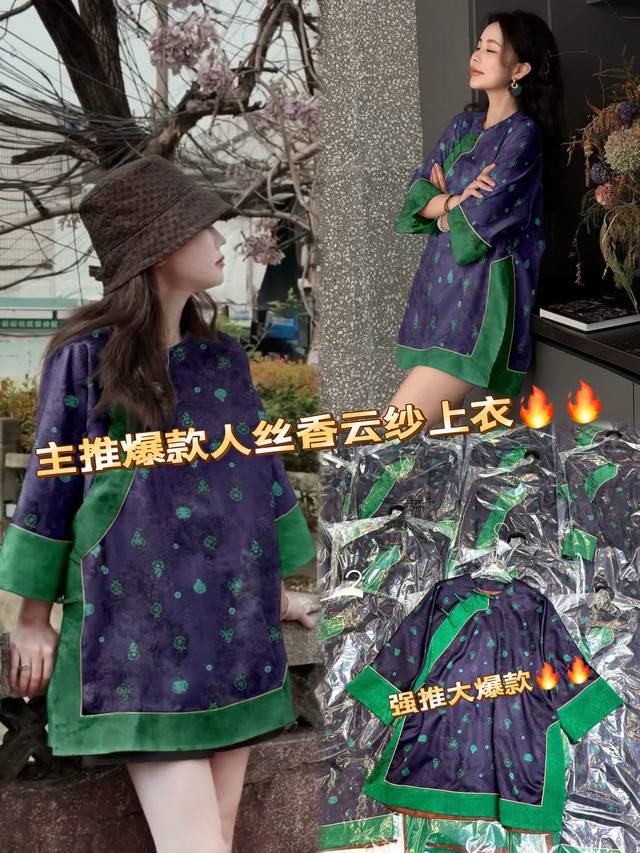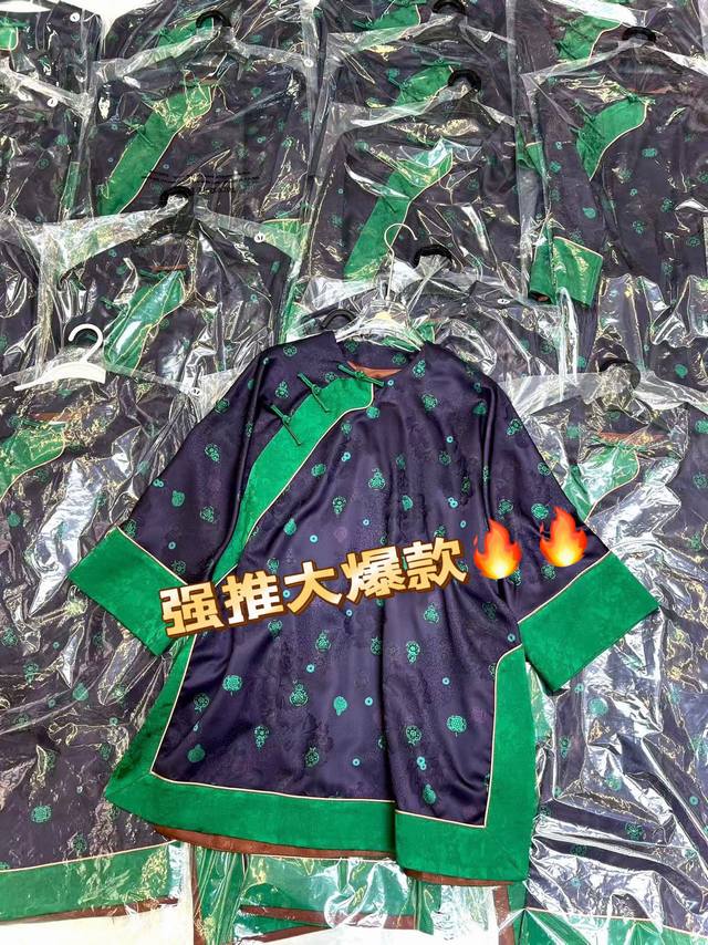 High-end version shipped in large quantities High-end rayon xiangyun yarn contrasting jacquard top Retro Chinese style oblique lapel Exquisite and elegant generous Exquisite buttons embellished with retro decoration Eye-catching, jacquard fabric breaks the monotony and adds a sense of layering Smlxl