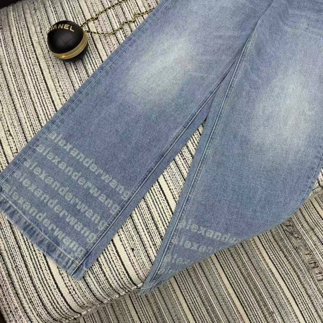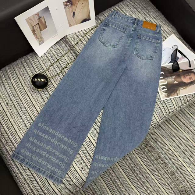 Highly recommend Alex's new 2025 early autumn collection denim wide-leg pants with hot-stamped rhinestone letter print. The washed color is beautiful. Sml DDD