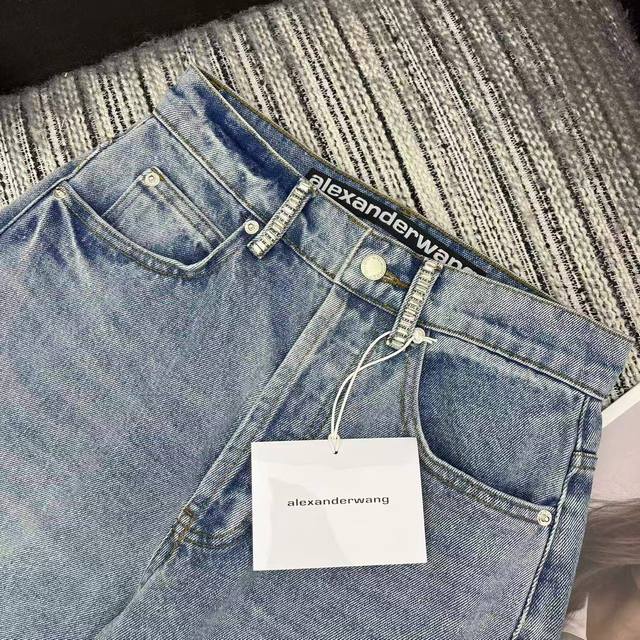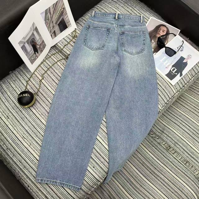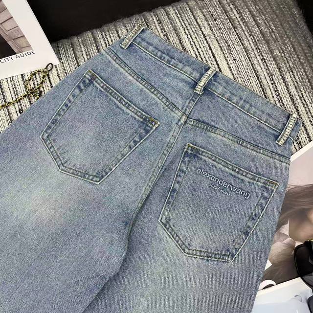 Highly recommend Alex's new early spring 2026 collection, rhinestone ear-embroidered jeans with letter logo, embossed pockets, beautiful wash, solid color, three sizes available.