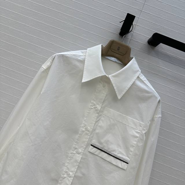 Highly recommend BC's new Long-Termism cropped shirt! The copper chain-embellished front pockets create a simple, understated Italian style. The loose, cropped silhouette is versatile and a stylish, casual commuter wardrobe essential. The quality of the workmanship is evident in the details. Available in two colors and three sizes. Size S, dropped shoulders, chest circumference 108cm, length 57cm.