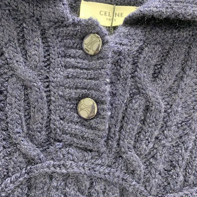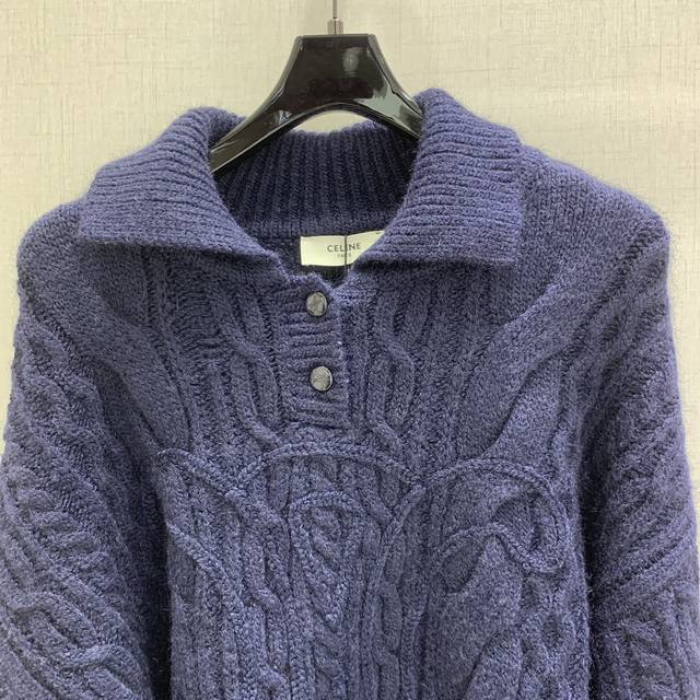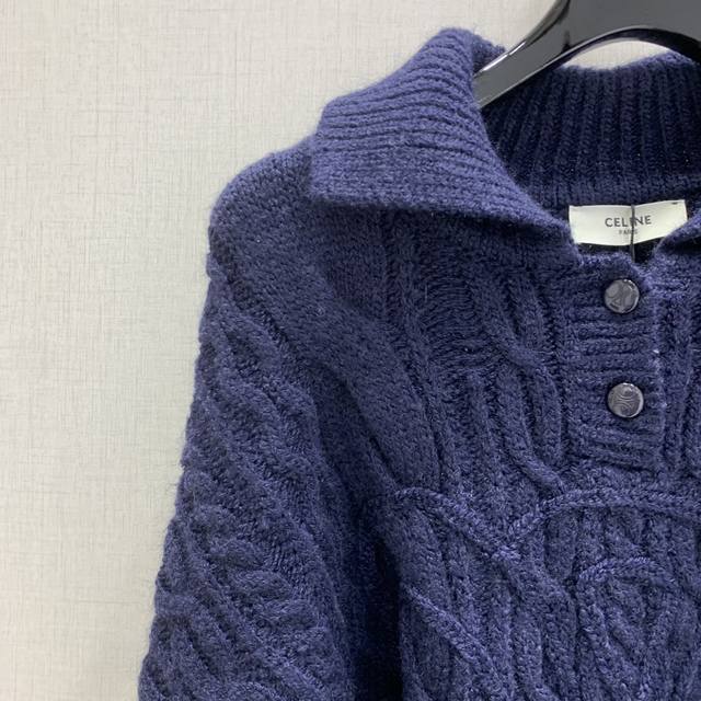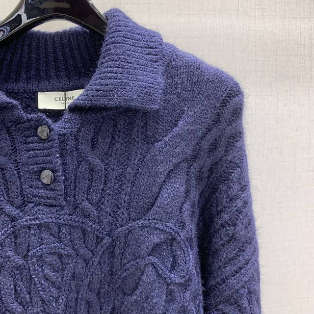 Highly recommend Ce*2025 autumn and winter new style knitted lapel pullover with twisted button rope craftsmanship and 3D logo pattern decoration. YB mold logo button embellishment high-end fashionable exquisite versatile! 2 colors S M L size