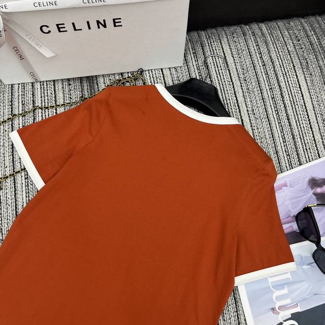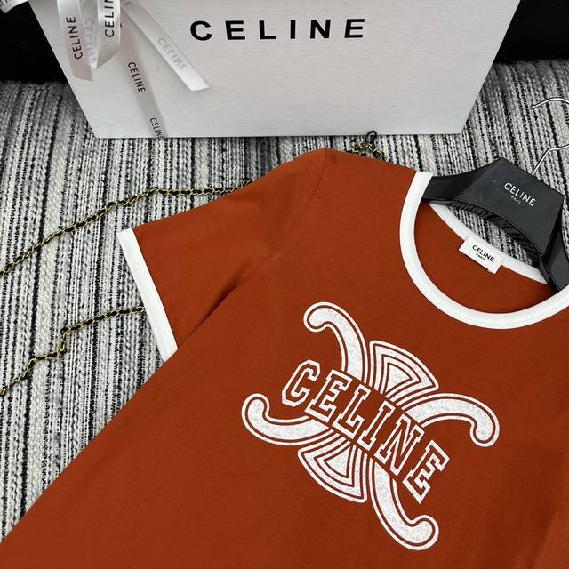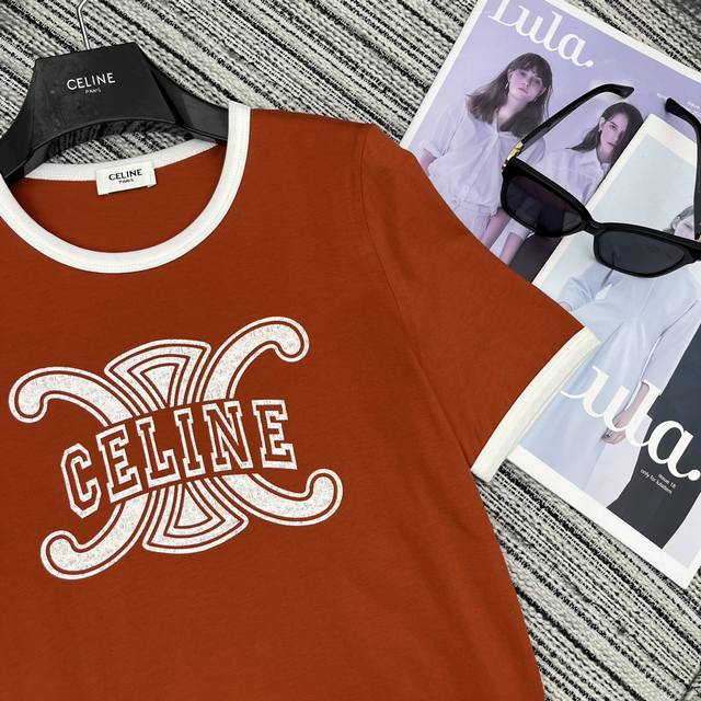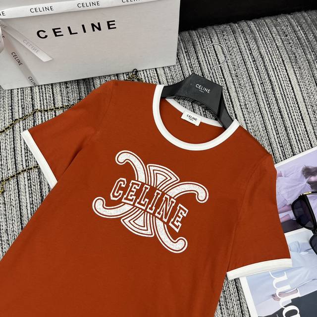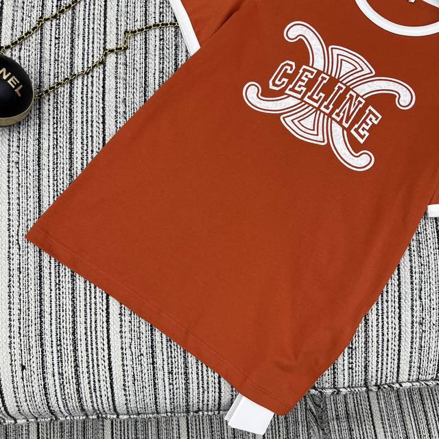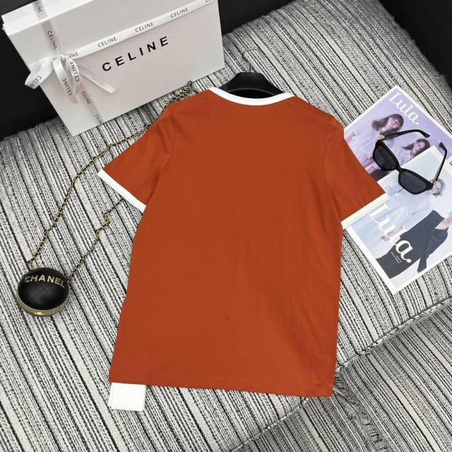 Highly recommend Celin*'s 25th year of early autumn new logo print colorblocked cotton round neck short-sleeved T-shirt | Exclusive high-edition product! Selected skin-friendly pure cotton fabric, with the brand's iconic double C interwoven elements and reverse letter logo print, the luxury gene is cleverly combined with American retro preppy style, with a strong visual impact and full recognition. The short version is neat and shows the waistline, easily creating the golden ratio of "short top and long bottom". It is suitable for a variety of bottoms such as high-waisted jeans and skirts. It can be salty or sweet to create a variety of early autumn styles. Available now SML