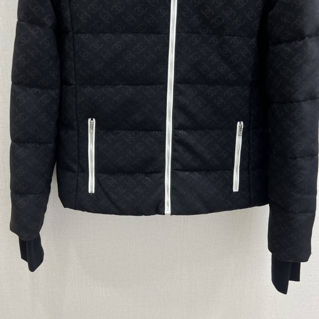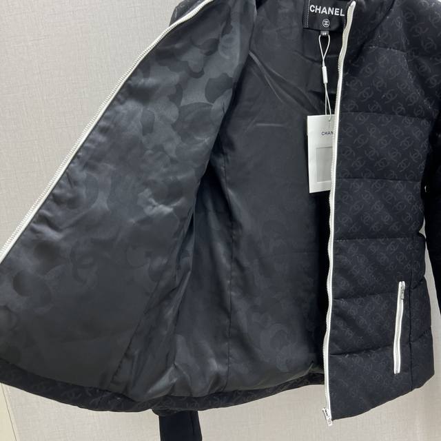 Highly recommend Cha* 2025 Autumn/Winter New Jacquard Down Jacket and Jacquard Double C Straight Leg Trousers, Custom-made in Separate Batches. Made with imported Yb jacquard material and down-filled lining, this lightweight and warm jacket features a stand-up collar for comfort and a flattering fit without bulk. Ribbed cuffs enhance its versatility. The classic rectangular checkered pattern and all-over double C jacquard lettering, along with the contrasting black and white color scheme of the zippered front and body, create a sophisticated and stylish look. Pair it with matching down straight leg trousers for a subtly luxurious, reflective jacquard finish. White stripes at the knees accentuate the prominent double C logo. This complete set combines warmth and style, making it a top choice for layering in autumn and winter. Available in 1 color, sizes S, M, and L. High-quality jacket and trousers.