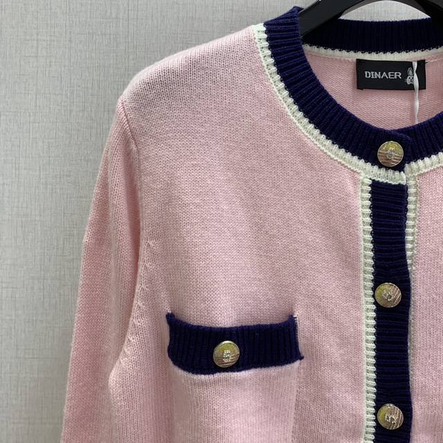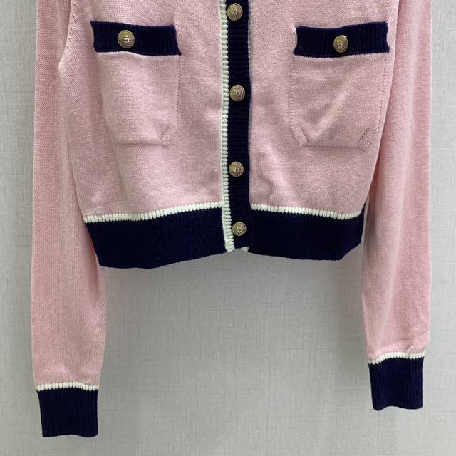 Highly recommend Chan*'s new 2025 early fall round-neck, pocket-trimmed cardigan! Custom-made imported wool knit for a refined, comfortable look. Decorated with a single row of brand-lettered buttons for adjustment, highlighting the brand's understated luxury style. Double side pockets adorned with brand buttons enhance the overall look, showcasing a refined and refined look. This round-neck, long-sleeved cardigan is perfect for everyday wear or formal occasions! Available in one color: S, M, L, and D, D, D.
