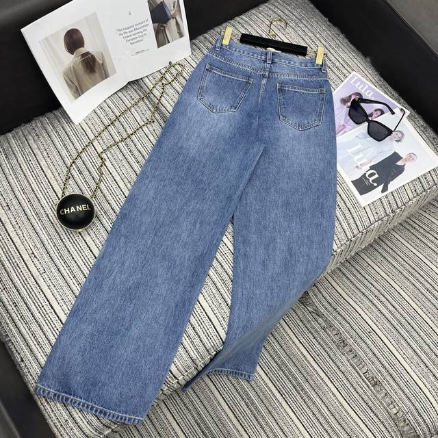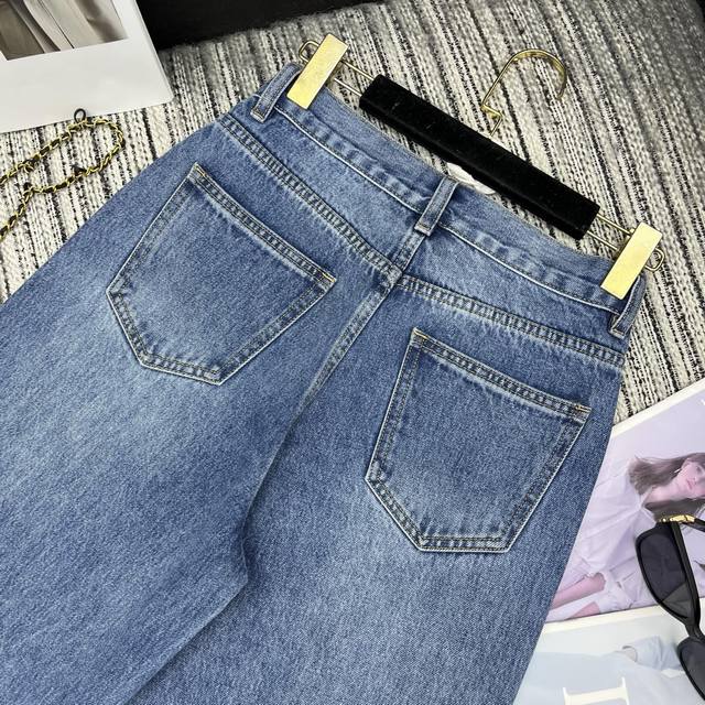 Highly recommend Cha*'s new Double C Logo printed straight-leg jeans from the 2025 Early Fall collection, three sizes in solid color.