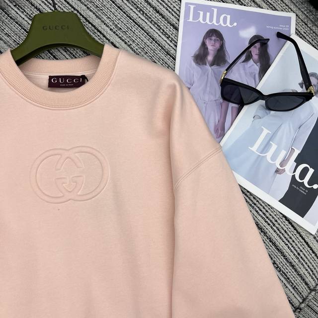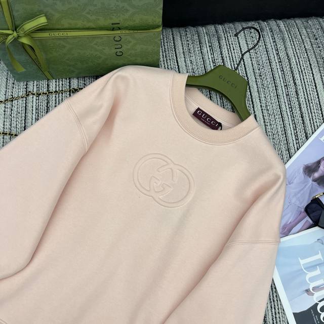 Highly recommend Guc*25 autumn and winter new round neck three-dimensional logo sweatshirt customized Yb original cotton material, velvet treatment on the inside, warm and skin-friendly, not easy to deform and pilling after long washing, full of texture, and processed with multiple washing processes to present a retro style. The pullover round neck long-sleeved sweatshirt is fashionable and casual, with a three-dimensional embossed double G letter logo on the chest, which instantly enhances the brand style . The loose version is combined with the dropped shoulder details and the flared hem to add a relaxed atmosphere. It is a guide for daily casual wear, relaxed and fashionable. For customized fabrics and accessories , look for the high version 3 colors Sml3 size