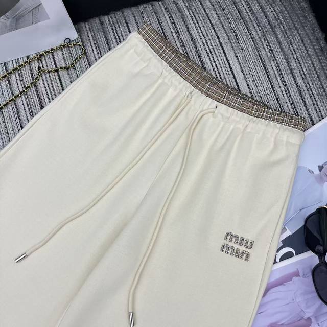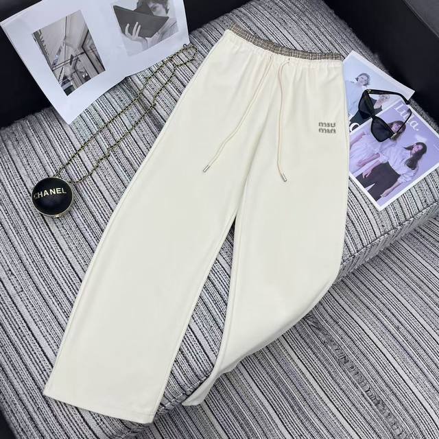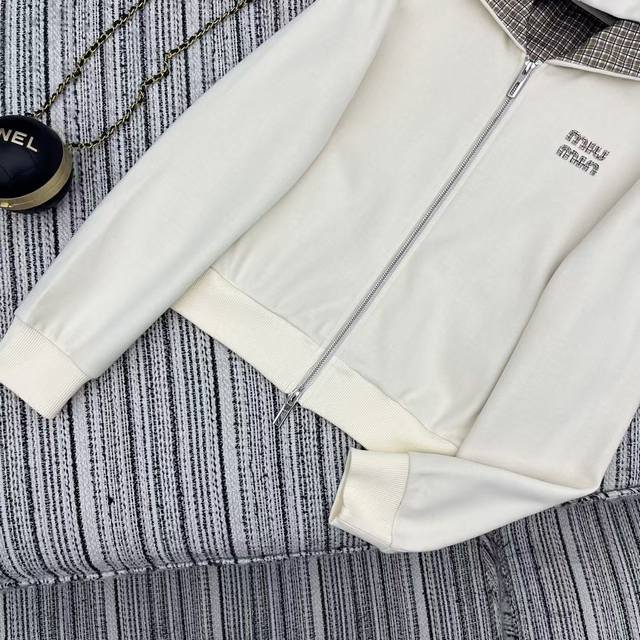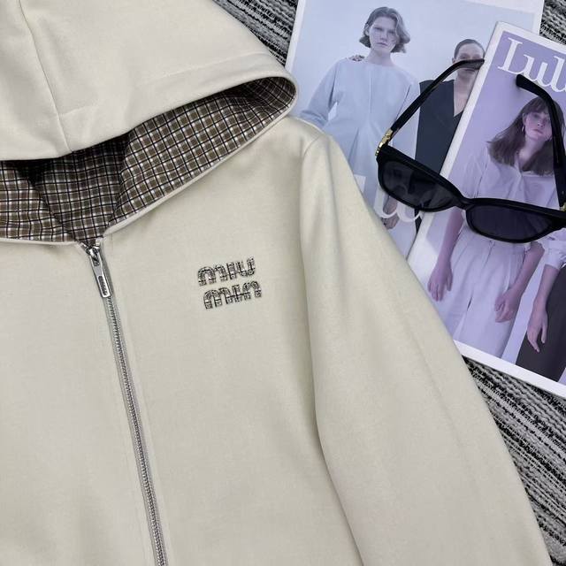 Highly recommend Miu's new hooded casual jacket with elastic waist and straight pants set from the 25th Early Fall series. Two-color plaid alphabet patch embroidery. Sml.
