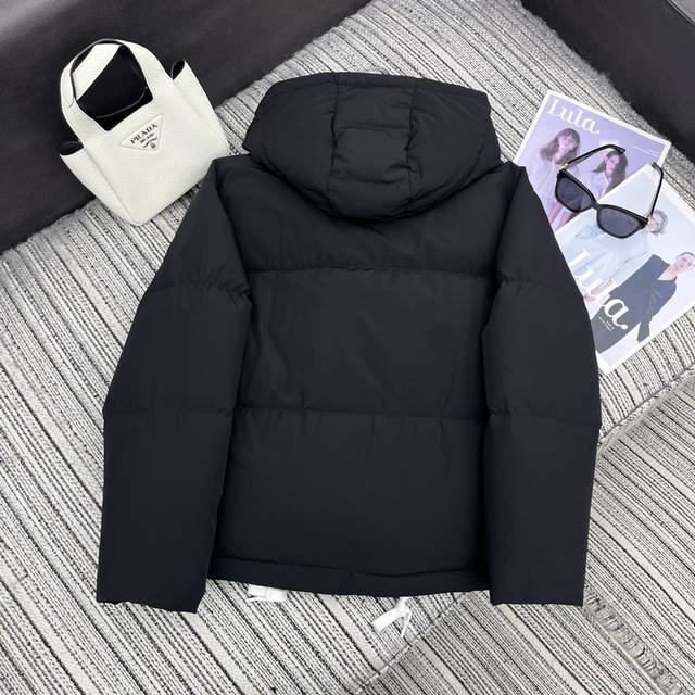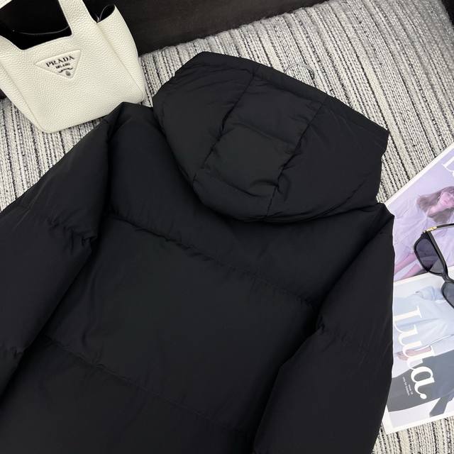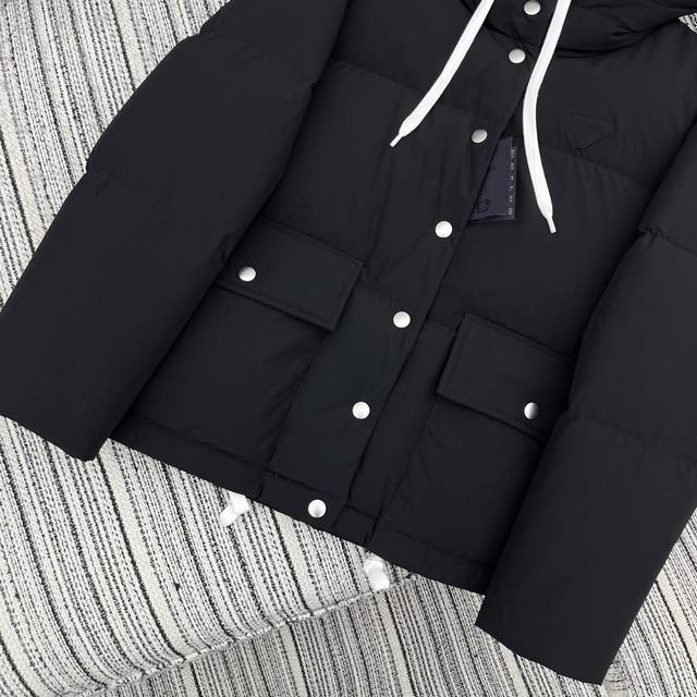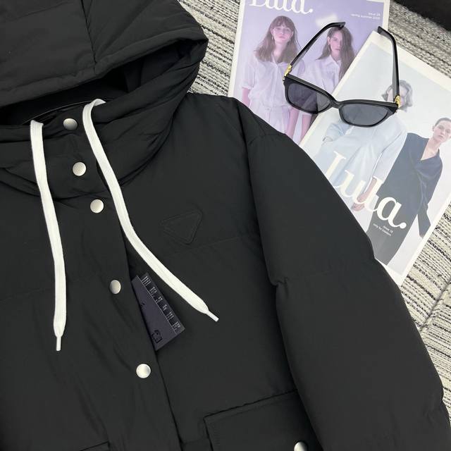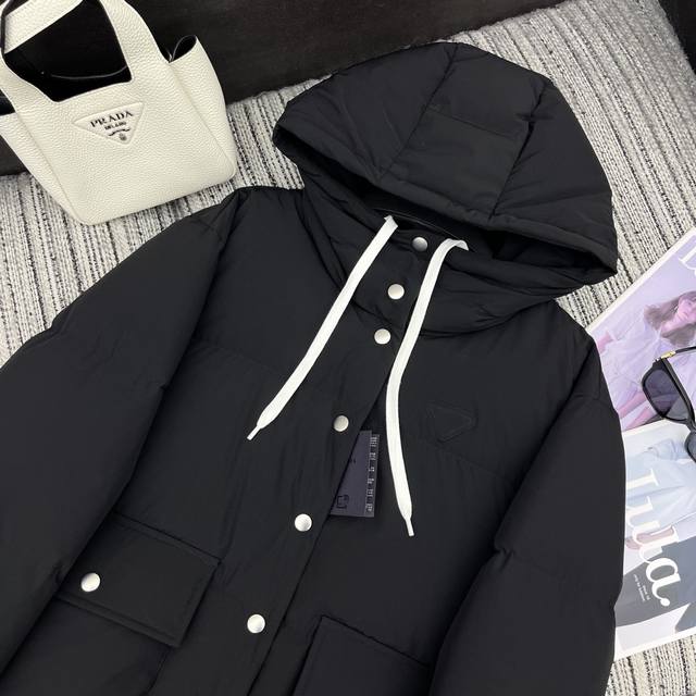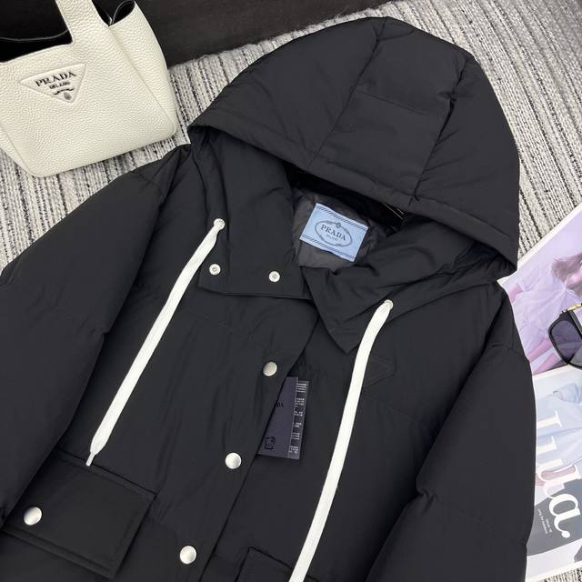 Highly recommend original quality, exclusive first release of pra* new autumn and winter hooded down jacket in mid-length, super wearable length, customized gentle milky white, the fabric is matte fabric, the gloss is very good, the whole garment is filled with 90% white goose down. Because the fabric is white, the down requirements are very high, and dark down must be picked out, so the down is filled a lot, but the whole garment is light and warm. There is also a drawstring design at the waist, which is warm and not bloated. Two colors Sml