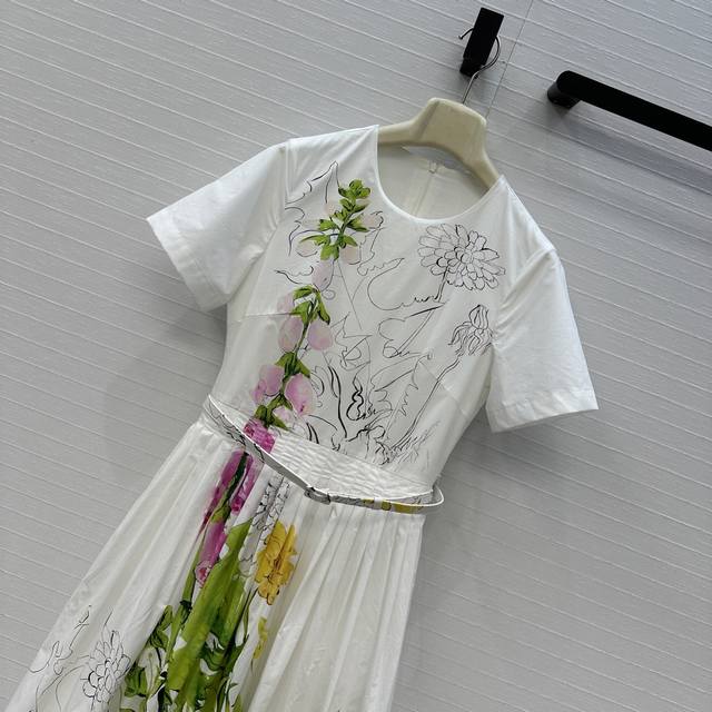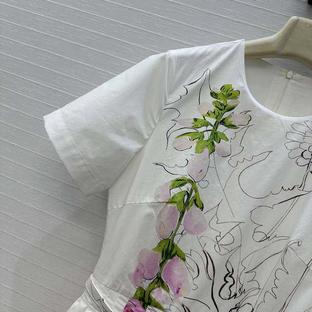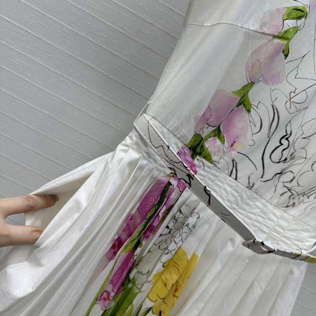 Highly recommend Oscar De La Renta's new 2026 resort-style printed short-sleeved dress! The floral pattern is romantic and artistic! The pleated design and high-waisted cut, along with the adjustable belt, flatter the figure and enhance your overall look. The mid-length skirt is elegant and comfortable. Made of lightweight pure cotton, the quality is evident. Available in four sizes, size 36: shoulder width 35cm, bust 86cm, waist 68cm, skirt length 120cm. DDD