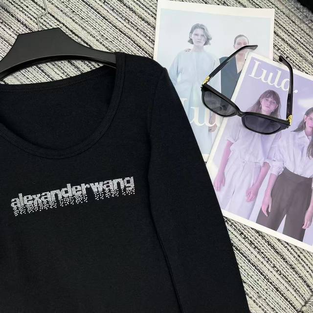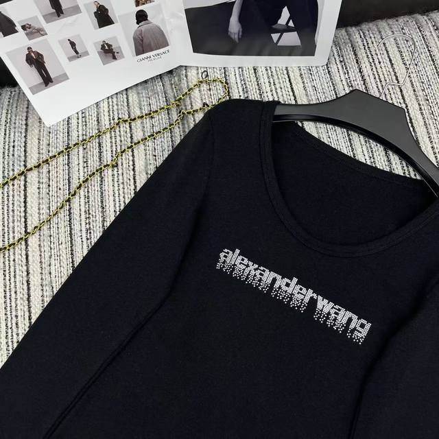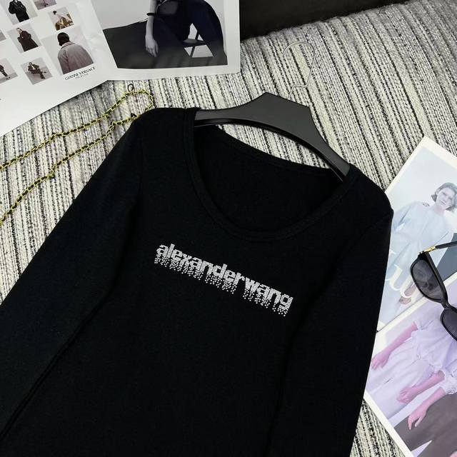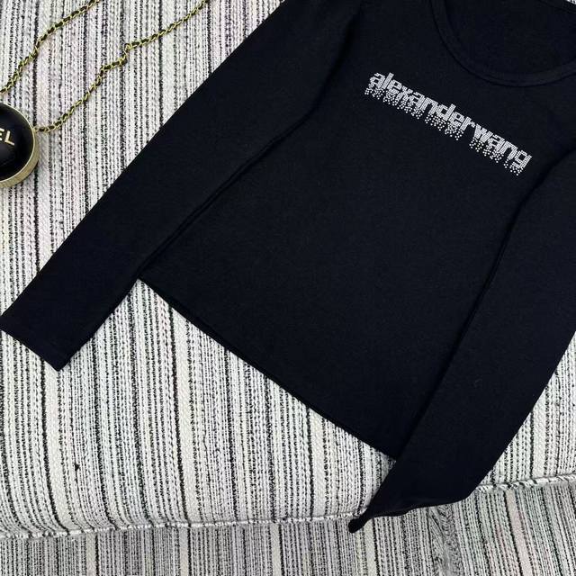 Highly recommend the 2025 Early Autumn Collection Alex* New Rhinestone Letter Long-Sleeve T-Shirt in Three Colors (Sizes S, Sizes M, Sizes