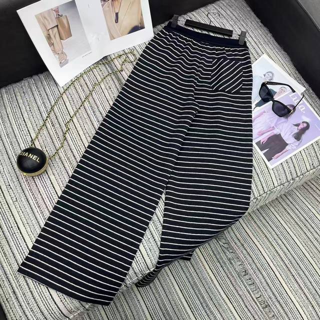 Highly recommend the 2025 early autumn collection Cha* new striped elastic waist casual straight leg pants with letter embellishments, available in two colors: S, M, L, D.