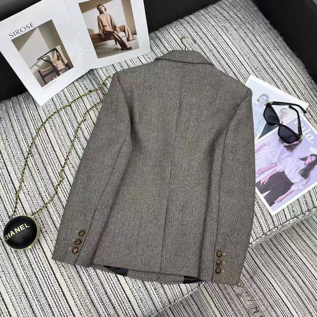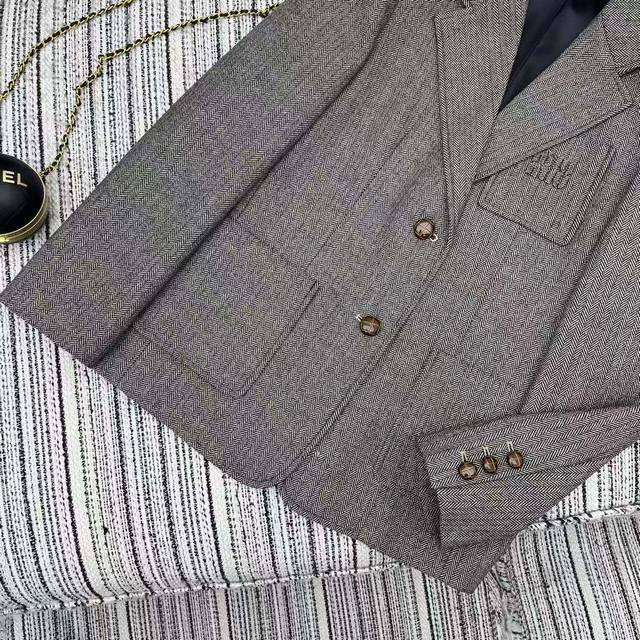 Highly recommend the 2025 early autumn collection Miu* new wool herringbone lapel suit jacket with letter appliqu