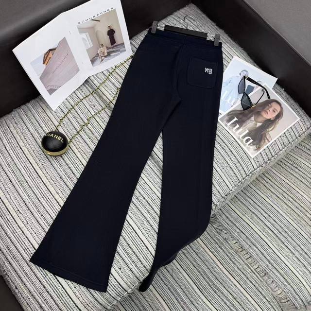 Highly recommend the 2025 early autumn/winter collection Alex* new letter elastic waist flared casual pants with rhinestone letter pockets, fleece lining for warmth, available in three colors S, M, and L. DDD