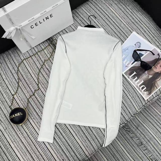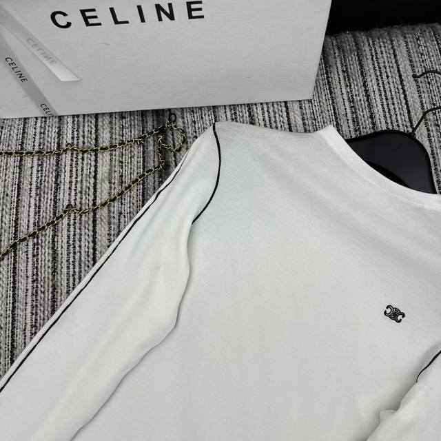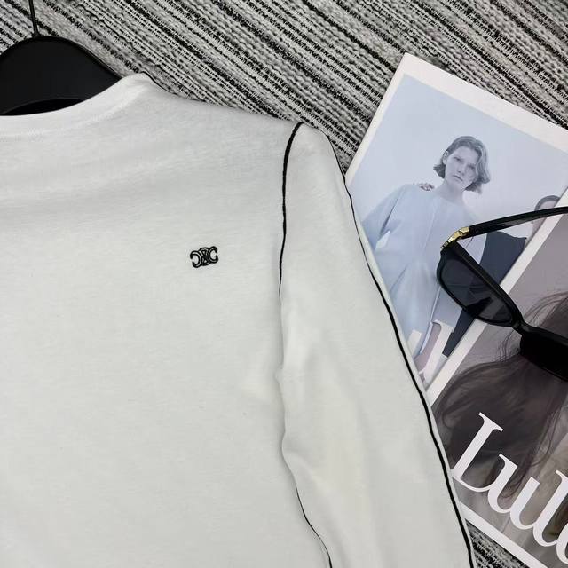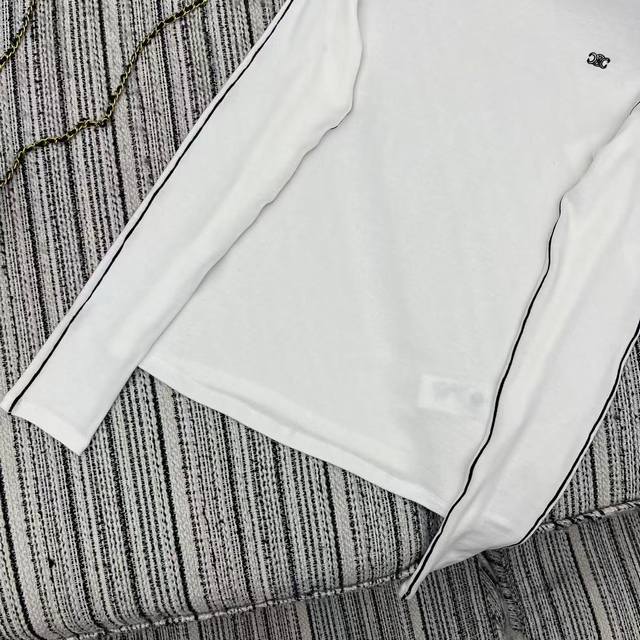 Highly recommend the 2025 early autumn/winter collection Cel* new style white striped long-sleeved top with embroidered letter logo and tricolor S/M/L embellishments. DDD