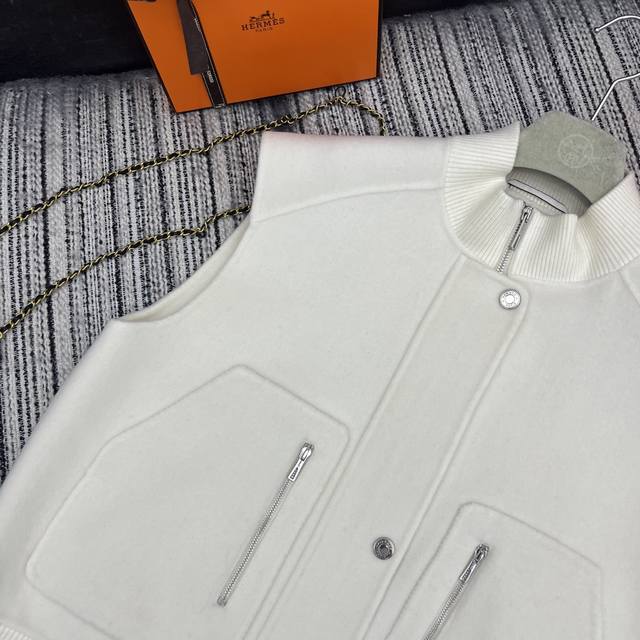 Highly recommend the 2025 early autumn/winter Her* new stand-up collar double-sided cashmere vest coat with spliced ribbed stand-up collar, simple and elegant, 100% cashmere, high-end quality. Yb 1:1 custom 4 colors, 3 codes.