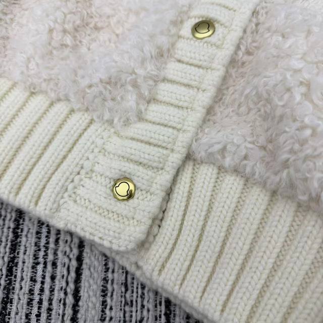 Highly recommend the 2025 early autumn/winter Mon* new Chanel-style teddy bear fur patchwork down jacket. Wool + teddy bear fur, retro and fashionable. Short cardigan design with metal button embellishments. Perfect details. 90% white goose down filling on the back for maximum warmth. Perfect for autumn and winter wear. Pair with high-waisted pants or skirts for an easy sweet and cool look. Great for everyday outings and parties. Original design, in stock. Available in black and white, S, M, L. DDD