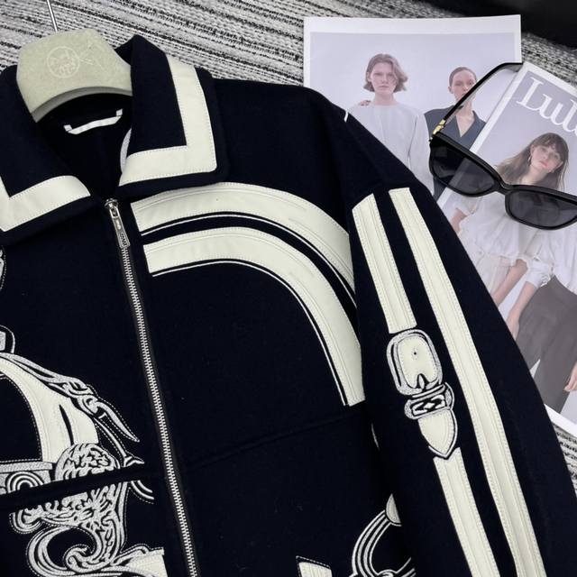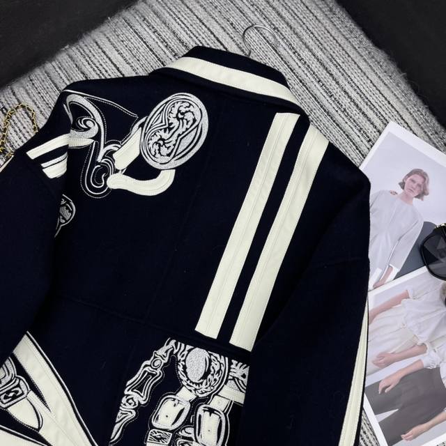 Highly recommend the 24th year early autumn and winter series Her* new style embroidery and lambskin double-faced cashmere lapel long coat jacket positioning flower design 100% double-faced cashmere Yb1:1 customized high-end quality Sml