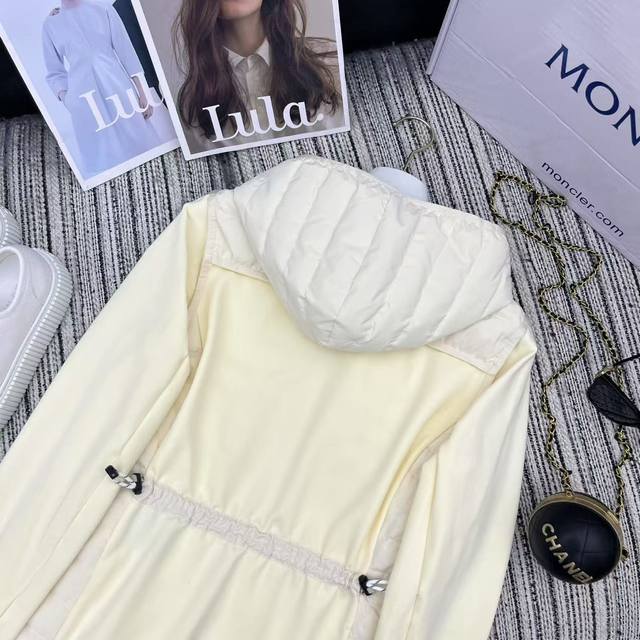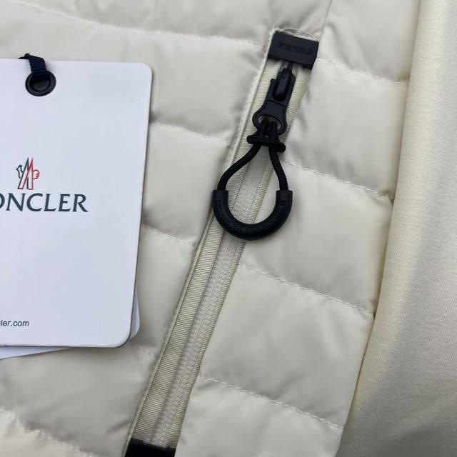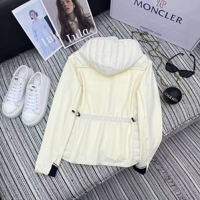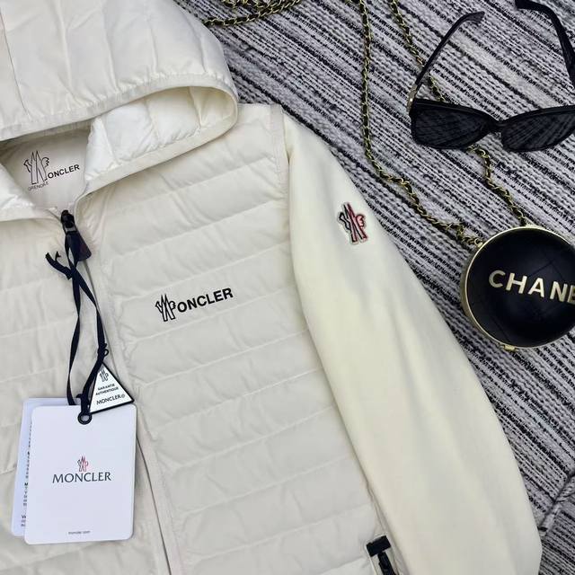 Highly recommend the 25th year early autumn and winter series Mon* new style hooded patchwork knitted sleeve down jacket slim fit classic sleeve embellishment 90% white goose down filling Yb1:1 customized high-end quality two-color 012.