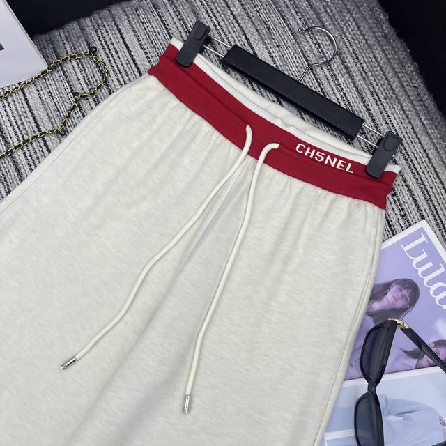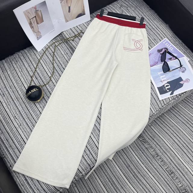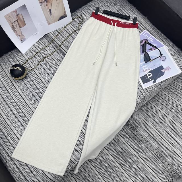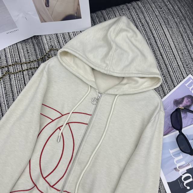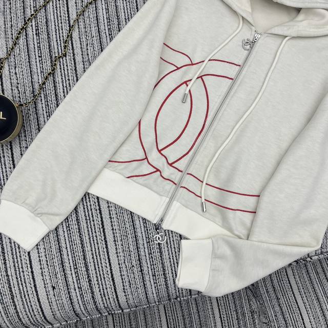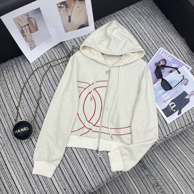 Highly recommend the 25th year early autumn series Cha* new double C embroidery patchwork hooded zipper long-sleeved jacket + contrasting color stitching letter high waist slimming loose wide-leg casual pants two-piece suit beige apricot navy blue Sml.