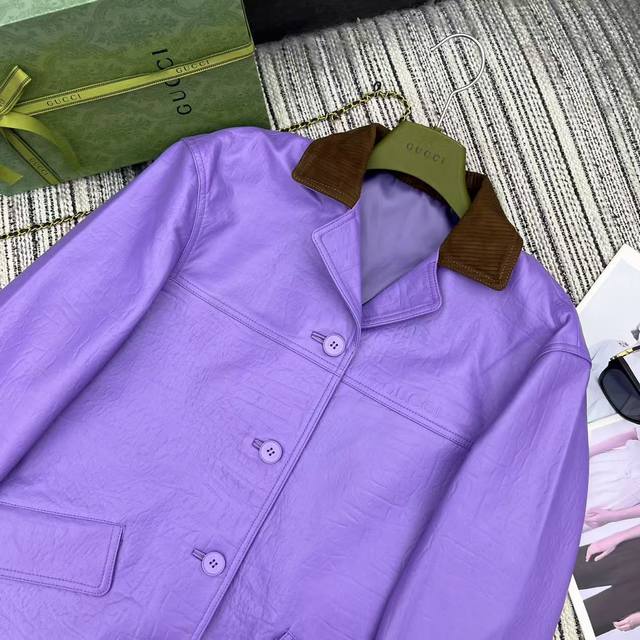 Highly recommend the 25th year early autumn series GUC* new style contrast color corduroy lapel tree grain leather lambskin suit jacket 100% lambskin Yb1:1 custom super true color two colors Sml price p last 4 digits