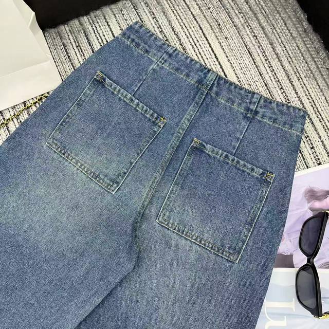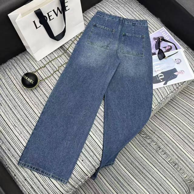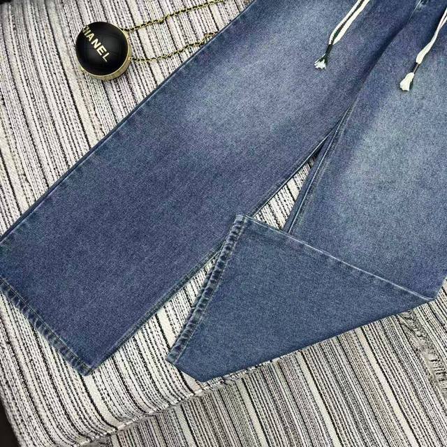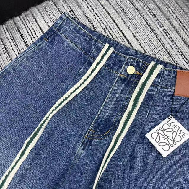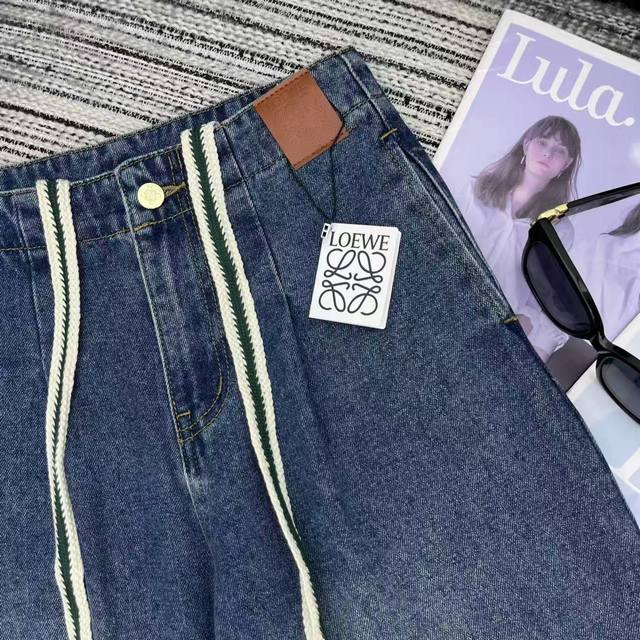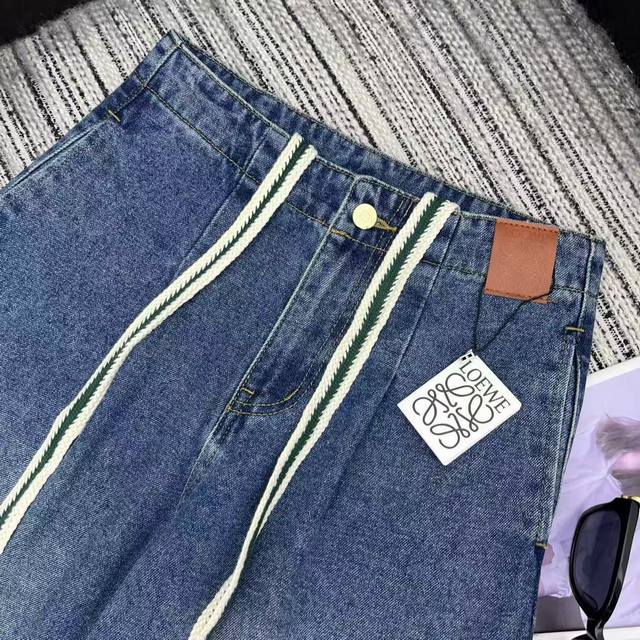 Highly recommend the 25th year early autumn series Loe* new straight jeans. Logo embossed leather patch embellishment. Drawstring design at waist. Beautiful washed color. Sml.