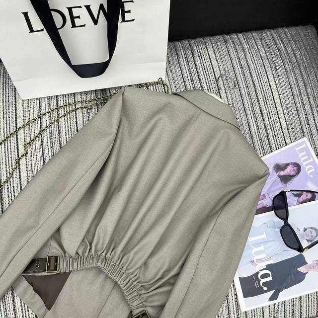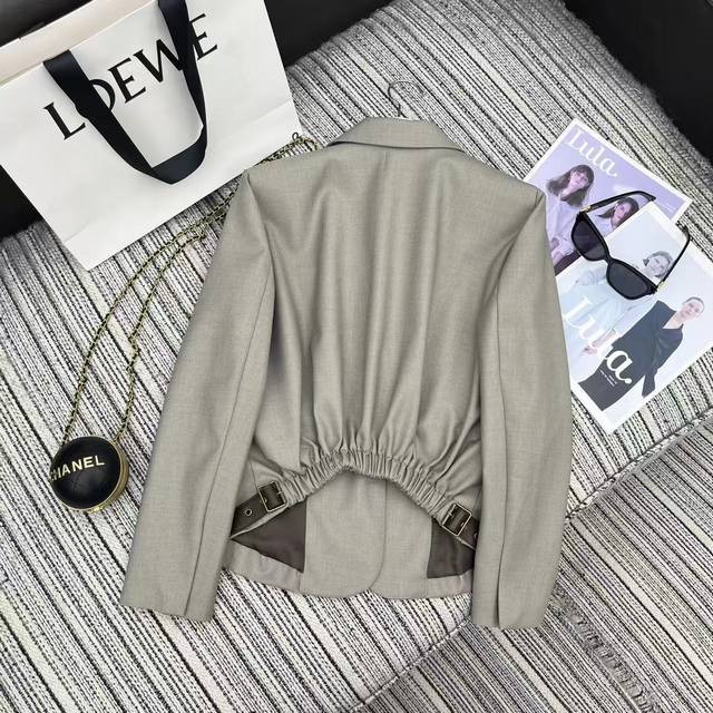 Highly recommend the 25th year early autumn series Loe* new style lapel suit jacket with back pleated hem and leather belt design in two colors Sml.