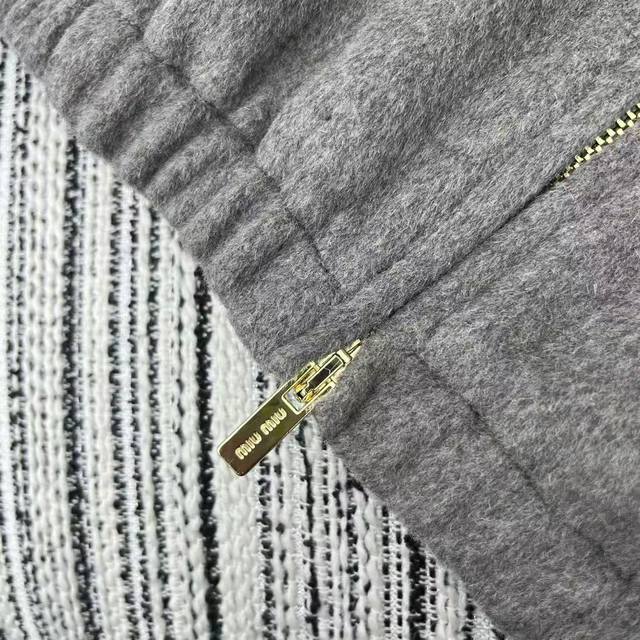 Highly recommend the 25th year early autumn series Miu* new lapel wool long-sleeved jacket with elastic waist short skirt suit letter patch embroidery embellishment Sml