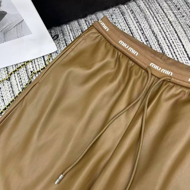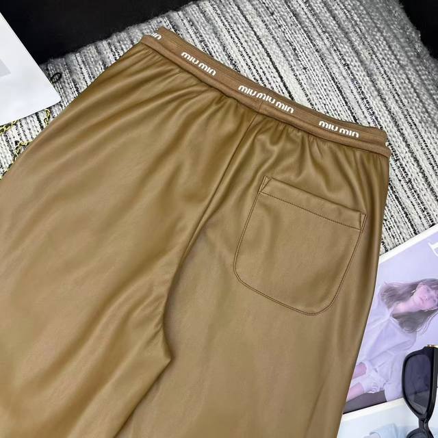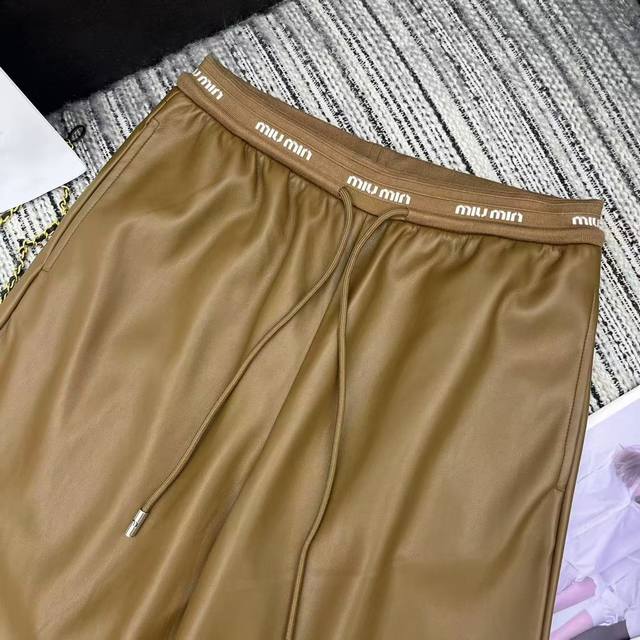 Highly recommend the 25th year early autumn series Miu* new style letter elastic waist PU straight leather pants two colors Sml.
