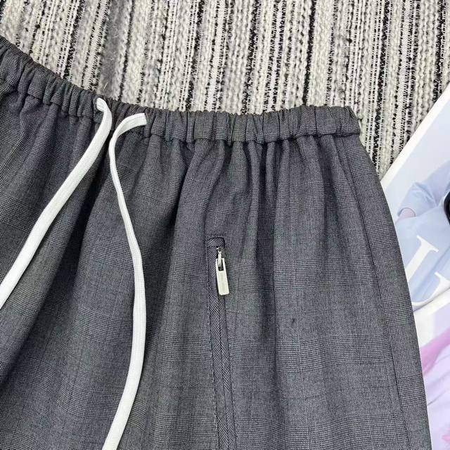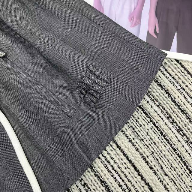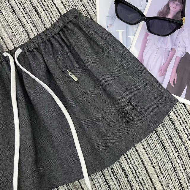 Highly recommend the 25th year early autumn series Miu* new style plaid elastic waist short skirt with white drawstring waist and letter patch embroidery embellishment Sml