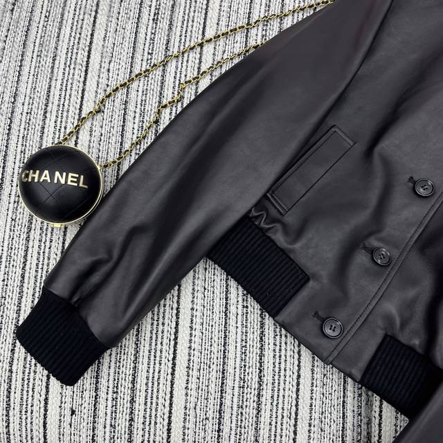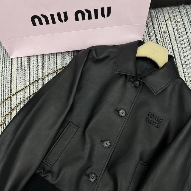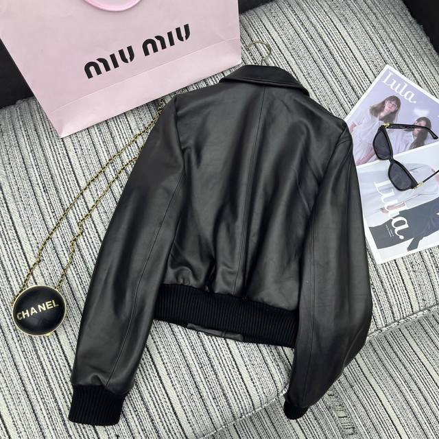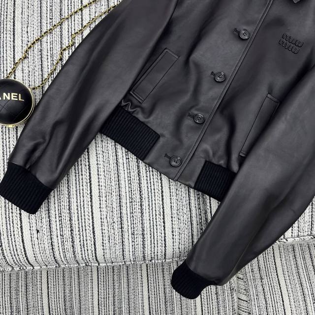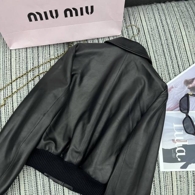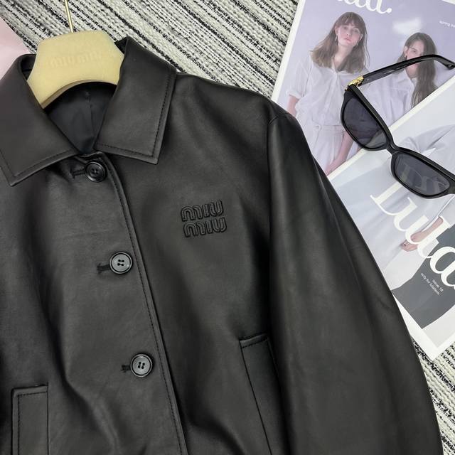 Highly recommend the 25th year early spring and summer series Miu* new lambskin lapel jacket coat leather letter embellishment Sml