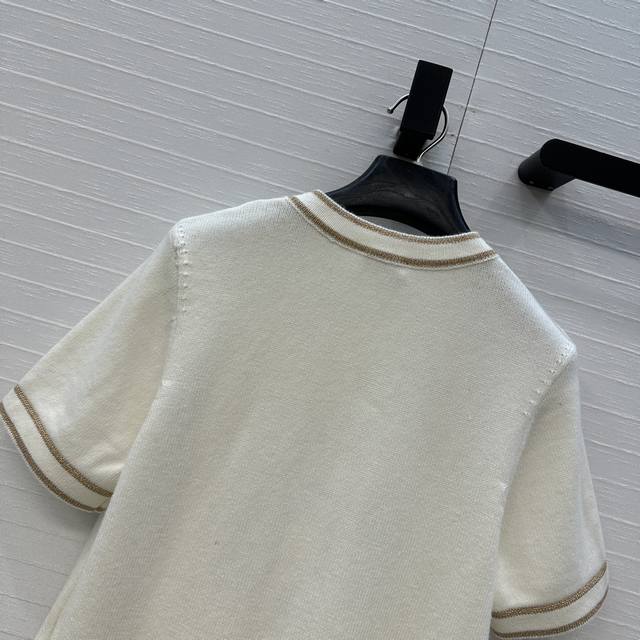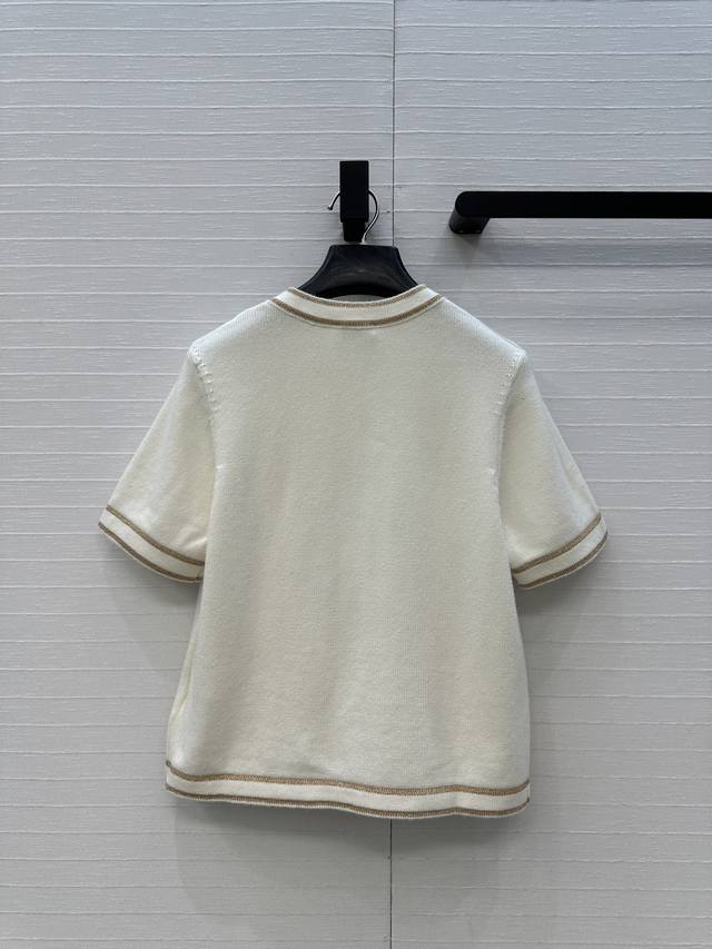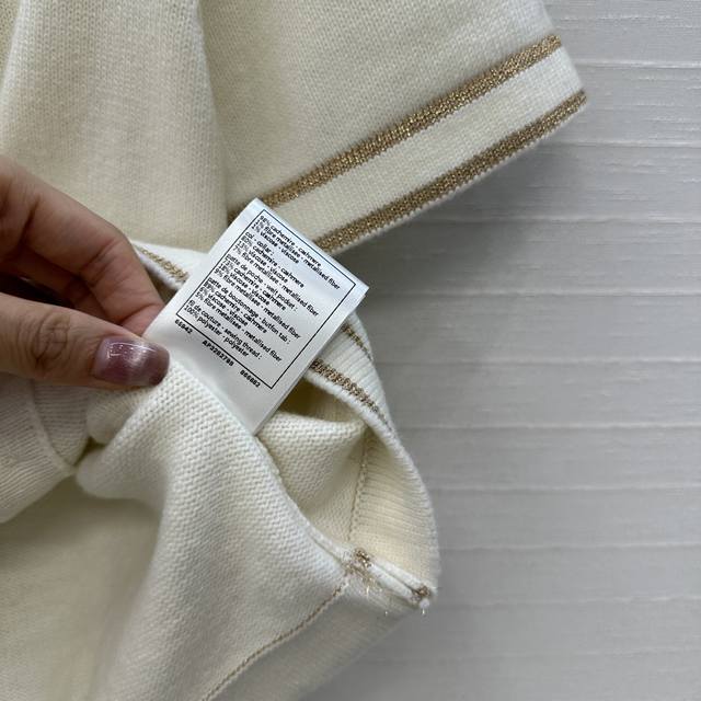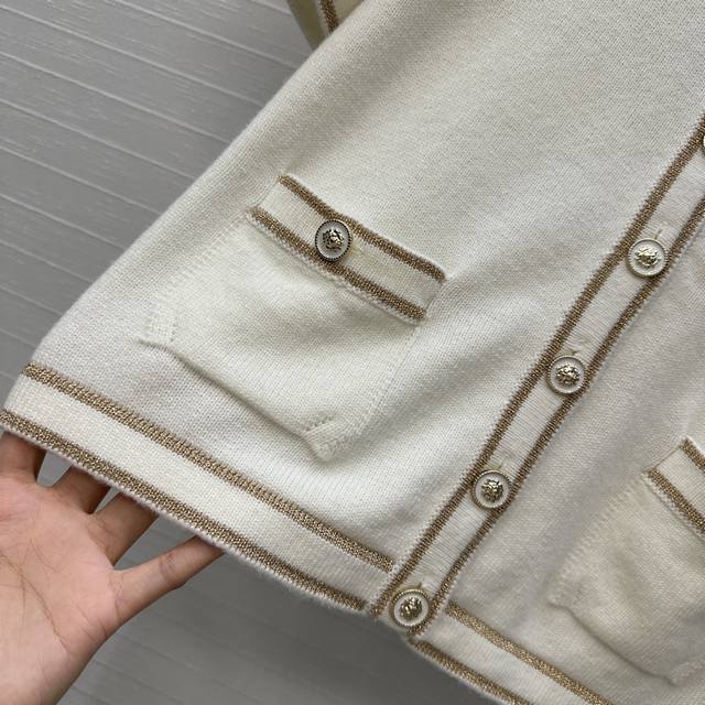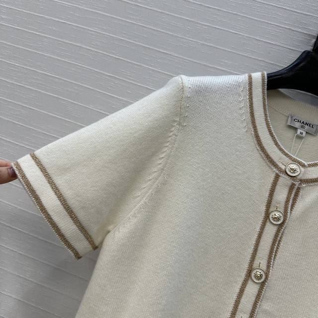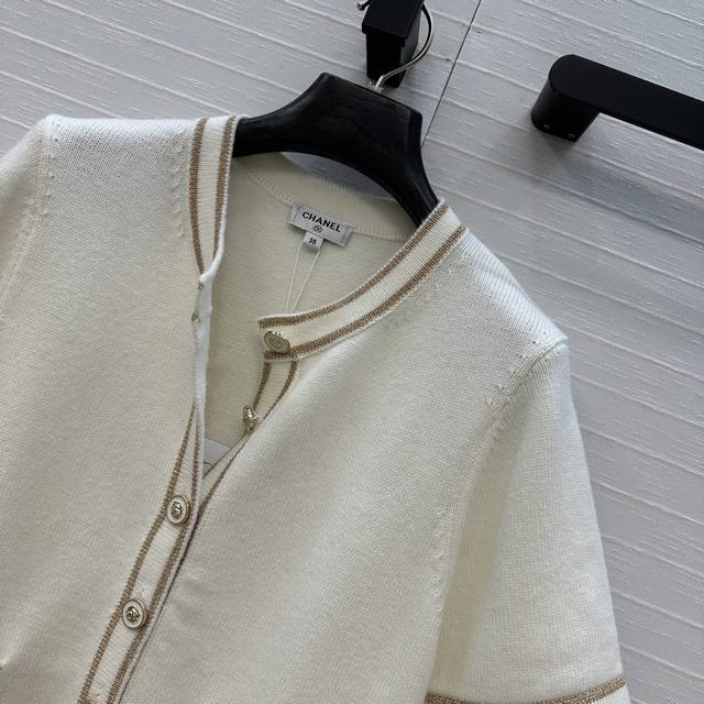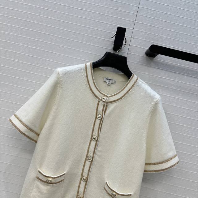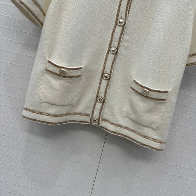 Highly recommend the new Ch*26C! A white and gold knit short-sleeved cardigan with gold thread trim, classic double pockets, a versatile and youthful round neck with a single-breasted design, exuding French elegance! Made with imported yarn for a delicate and comfortable feel. Available in sizes 36-40. Size 38: shoulder width 35cm, bust 86cm, length 49cm. DDD