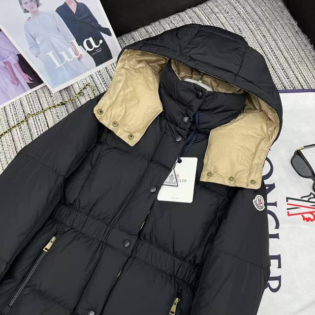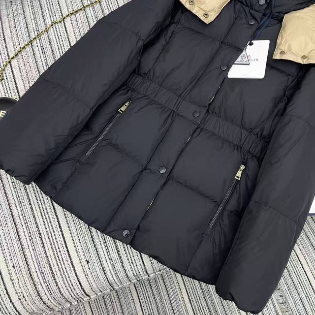 Highly recommend this 25th year early autumn and winter collection Mon* new hooded waisted down jacket with elastic waist and a great fit. It has classic sleeve badges and is generously filled with 90% white goose down in two colors.