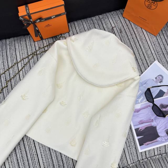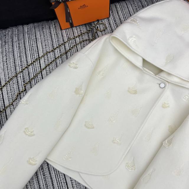 Highly recommend this 25th year's early autumn and winter collection. Her latest hooded, double-faced cashmere short coat features heavy embroidery throughout. Hand-sewn, 100% double-faced cashmere, high-end quality. Yb1:1 customizable in black and white. Sml. Black pre-orders will be out in two days.