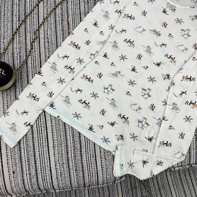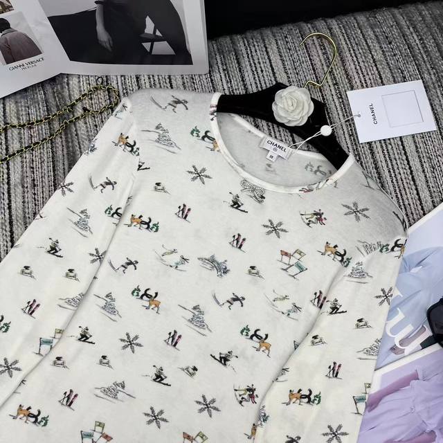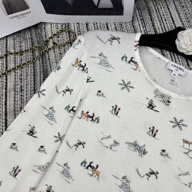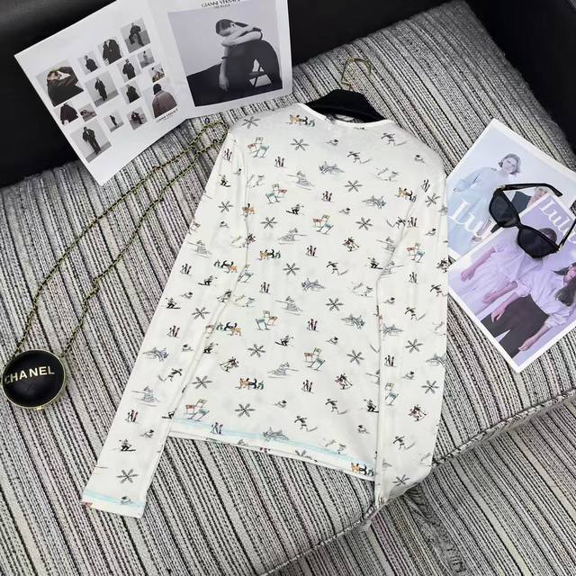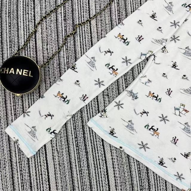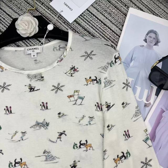 Highly recommend this exclusive first release! Cha* 2025 Autumn/Winter French Chic Ski Series Winter Fun Base Layer Top. Wear the ski resort on your body! The all-over print of skiers, cute animals, and snowflakes seems to weave in the lively atmosphere of a winter ski resort. The delicate bow at the round neck and the raglan sleeves add a touch of gentleness. The fitted design can be worn alone for a playful look or layered for added depth. It's a fun addition to any winter outfit, perfect as a base layer or worn alone. Available in 1 color, sizes S, M, L, and D.
