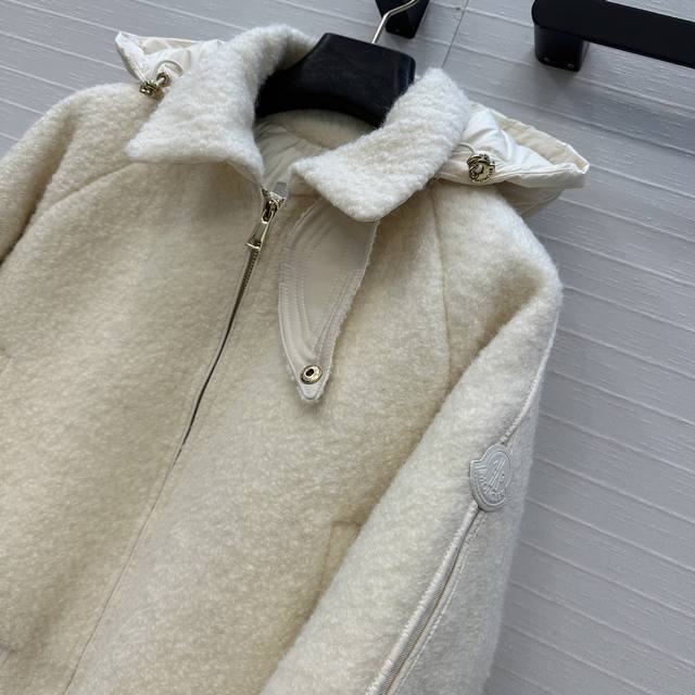 Highly recommend this original quality Juvigny wool hooded down baseball jacket, a must-have for autumn and winter. Features a detachable nylon hood, original custom tweed trim with contrasting edges for a French sporty look, and a youthful, stylish short cut that's easy to pair with any outfit! Filled with standard 90% white duck down! Warm and comfortable! Custom hardware included! Available in two colors and sizes. Order now! Size 0, chest 114cm, length 51cm. (