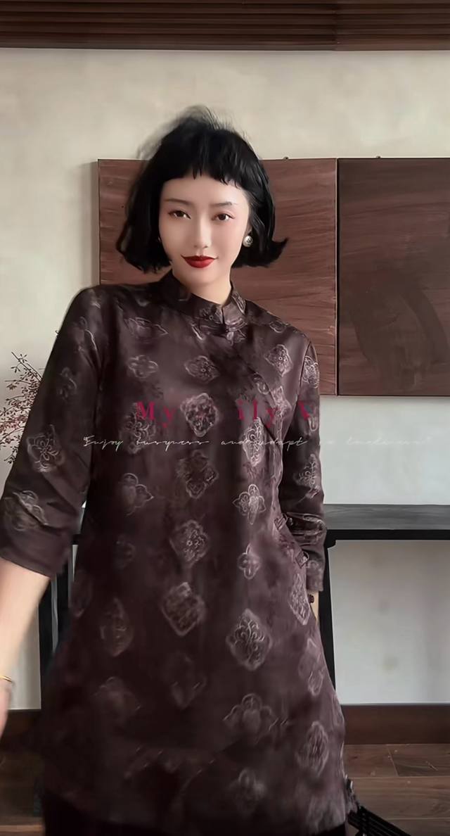 Highly recommend this popular, premium "Natural Xiangyunsha" cheongsam dress. This understated, luxurious, and refined cheongsam silhouette features perfectly designed sleeves that flatter the arm, and a stand-up collar that adds a touch of elegance. The Xiangyunsha fabric exudes a luxurious, high-quality feel, and we highly recommend this high-quality, high-volume item. Smlxl