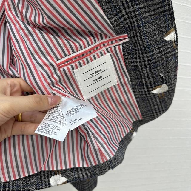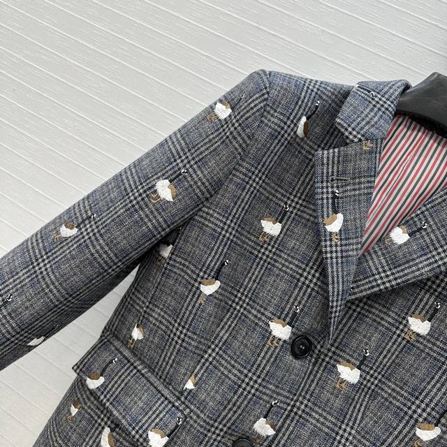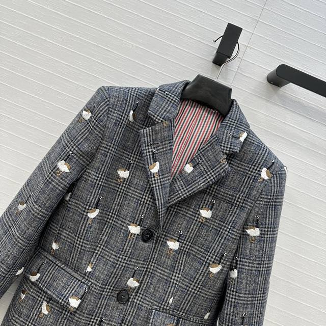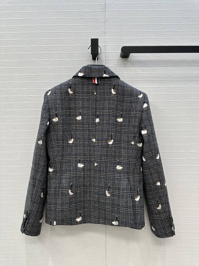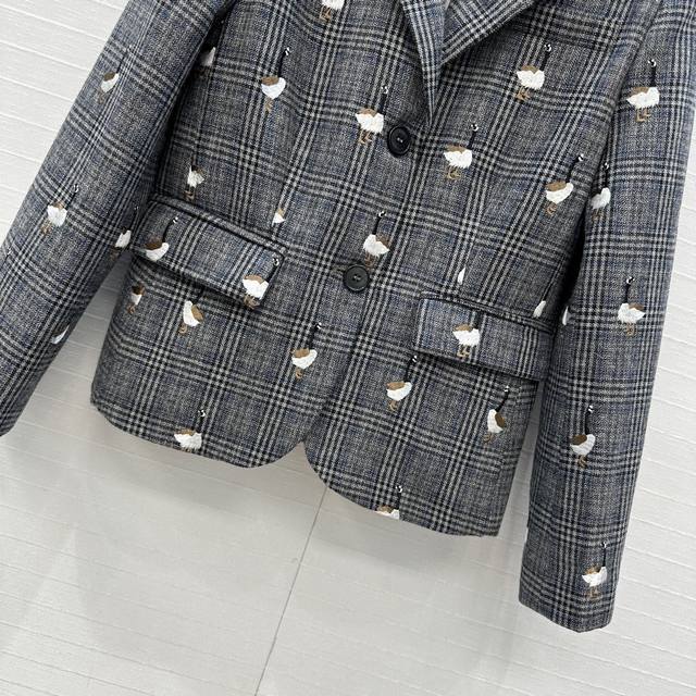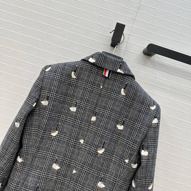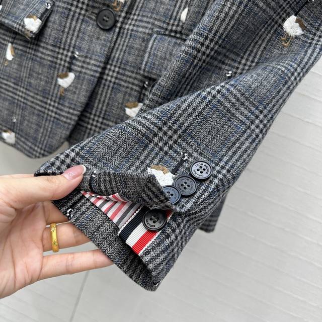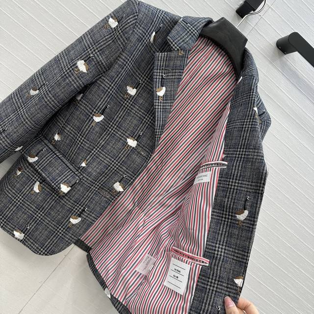 Highly recommend Tho* Brow*25's early autumn new arrival! A casual blazer with embroidered wild goose pattern and plaid design. Features a signature striped lining, a flattering cropped cut, and a single-breasted style that can be both sweet and edgy, exuding a preppy, youthful vibe. Made with imported fabric of superb quality! The workmanship and quality are evident in the details. Available in stock, all colors in size S and S! Send me your order! Size S. Shoulder width 37cm, Bust 90cm, Length 56cm. (DDD)