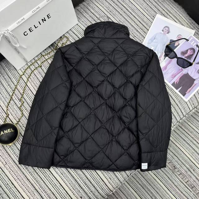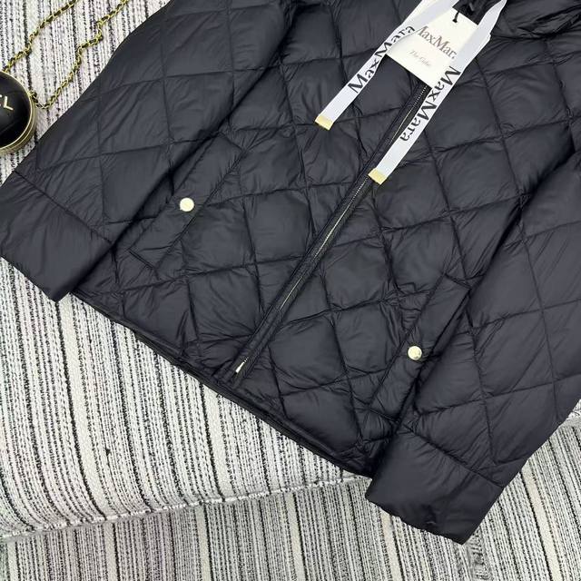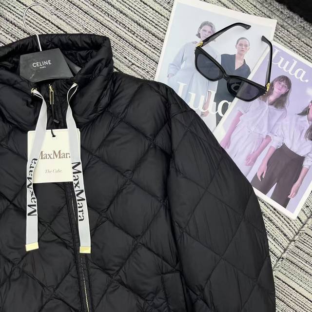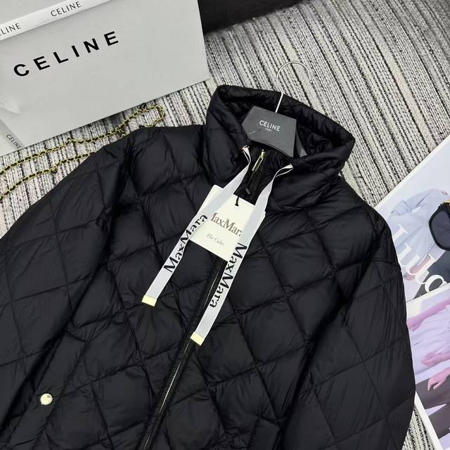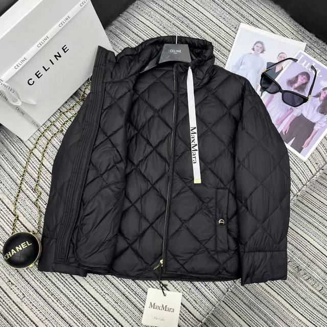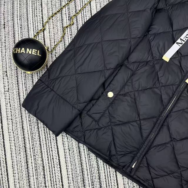 Highly recommended 25-year early autumn and winter series Max* new diamond stand collar down jacket, lightweight style, 90% white goose down filling, letter jacquard collar rope design, classic sleeve badge embellishment, light and full Yb1:1 customization, high-end quality, three colors and three sizes
