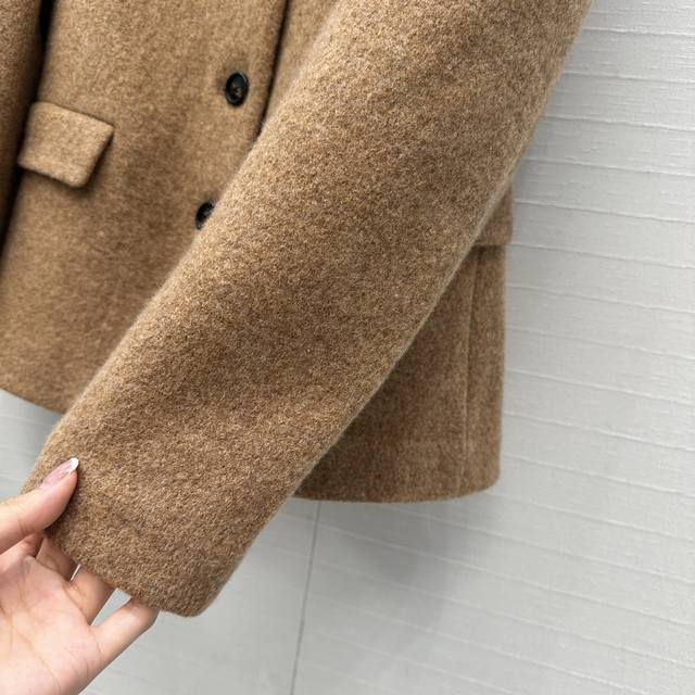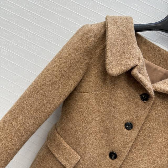 Highly recommended! Miu retro French chic wool suit, with a festive feel. The Peter Pan collar, fitted short blazer paired with a matching pencil skirt. This series emphasizes "retro youthfulness," combining classic workwear with sweet elements, suitable for parties, light formal occasions, etc. Two colors, three sizes: Size S (shoulder width 45cm, bust 92cm, blazer length 55cm, waist 68cm, skirt length 49cm). DDD