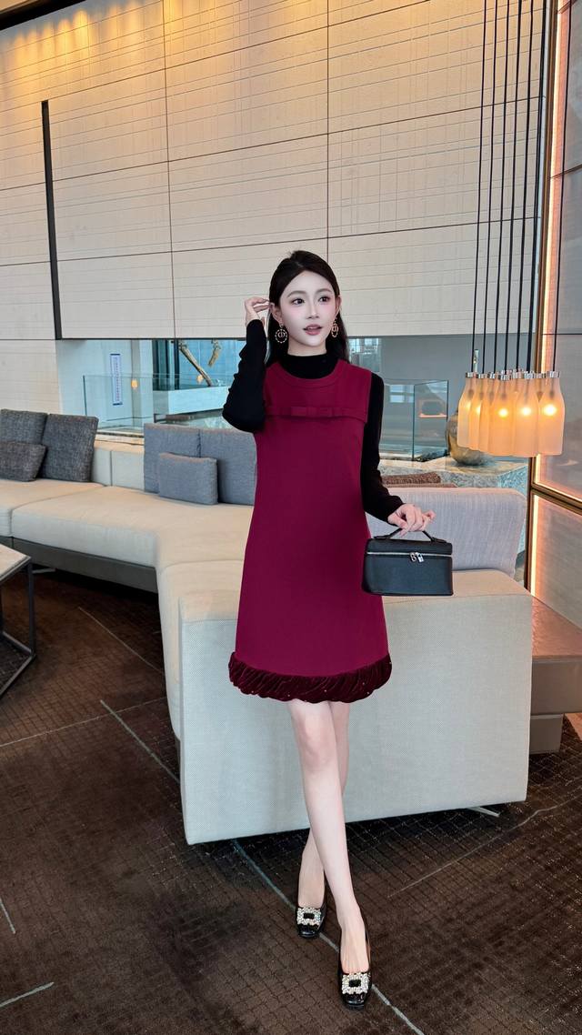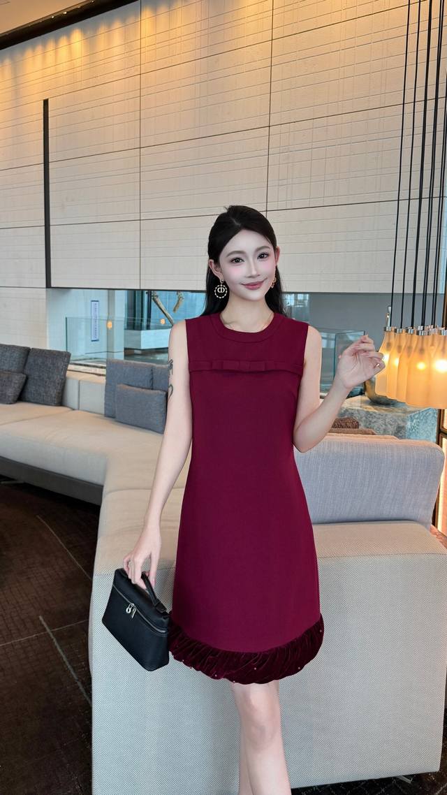 High-quality design vest skirt with thick hem and high-end fashion sense, black cherry red Smlxlxxl