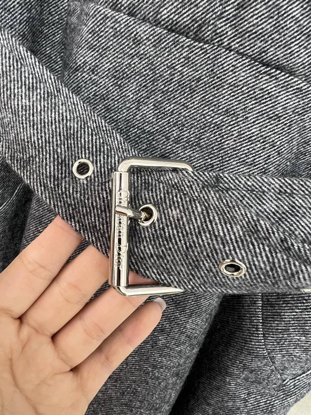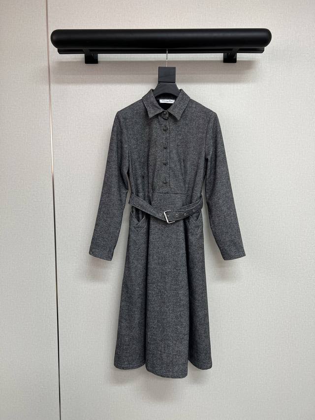 High-quality Dio*2025 autumn and winter new wool dress with a fabric belt. Bee