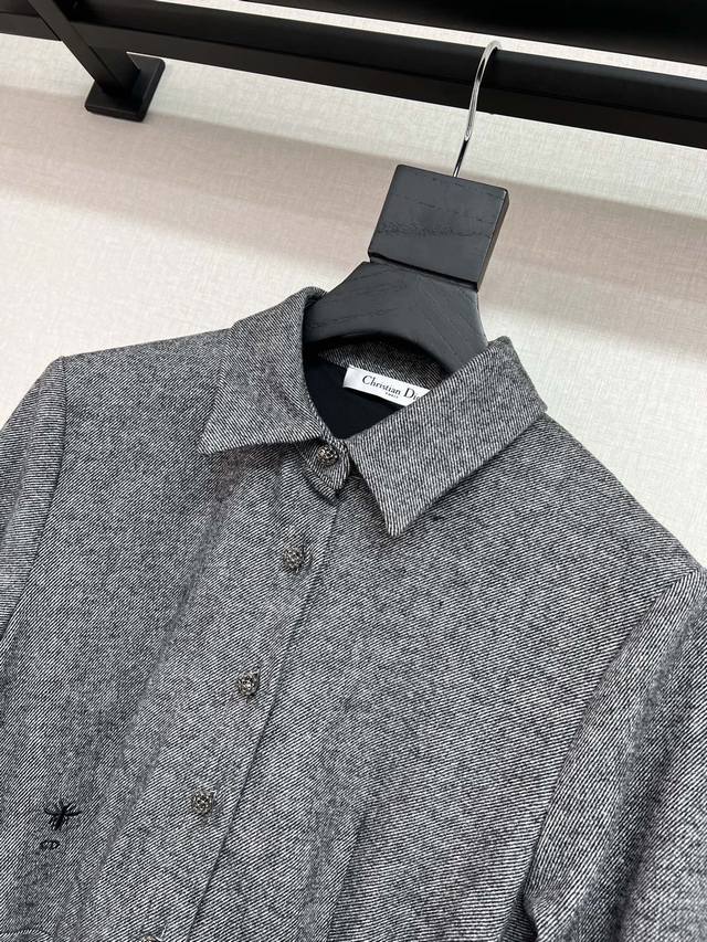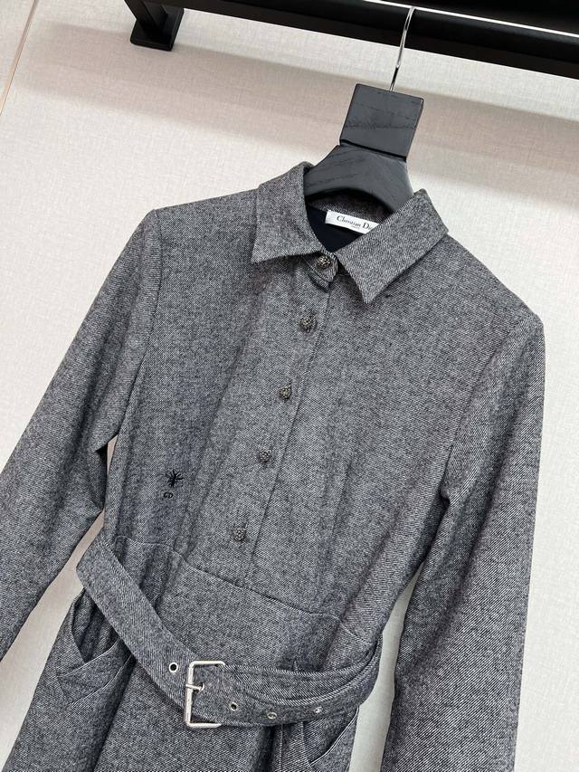 High-quality Dio*2025 autumn and winter new wool dress with a fabric belt. Bee embroidery. Simple and elegant design. Slimming and elegant. High-quality two-color Sml.
