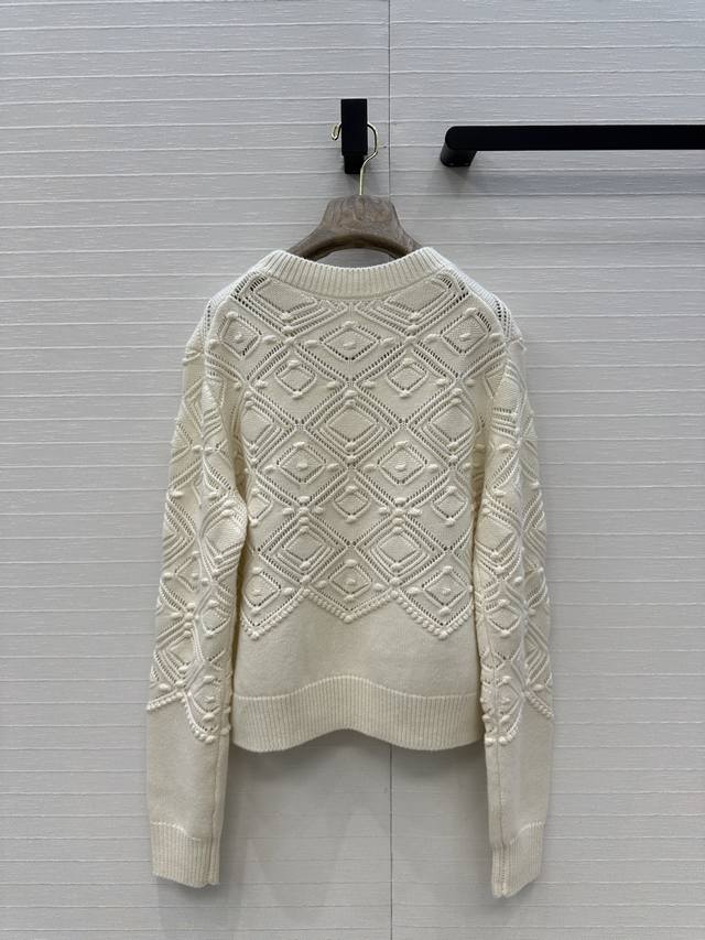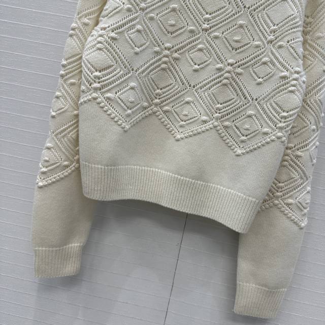 High-quality LP new Holiday series Holiday style elegant round neck cashmere sweater, featuring a hollowed-out diamond jacquard embossed design. A must-have for quality lovers! Heavyweight yarn, thick and with a superb texture! Simple, elegant, and a must-have high-end item for sophisticated women! Classic cut that makes you look tall and slim! Elegant, versatile, and flattering for everyone! Two colors, three sizes. Size S. Shoulder width 40cm, waist 100cm, length 52cm. (DDD)