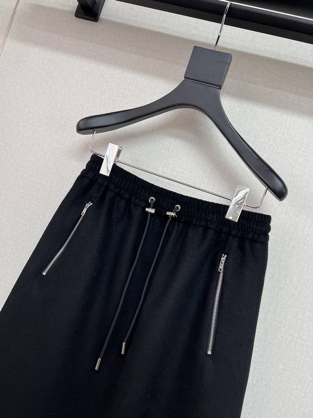 High-quality Prad*2025 Autumn/Winter New A-line Skirt with Side Zipper, Wool Fabric, Small Leather Label and Triangle Label Decoration, Versatile Style, Two Colors Sml DDD