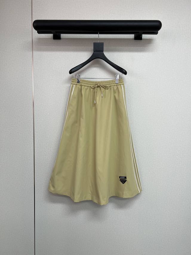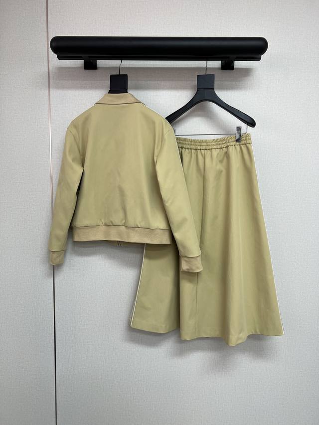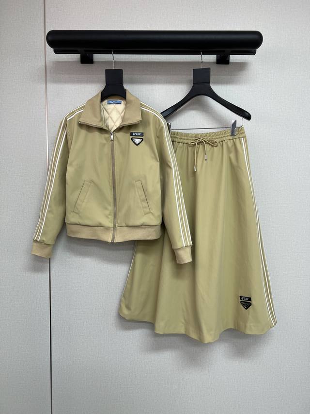 High-quality Prada Fall/Winter New Collection Jacket/Coat with Small Leather Label/Triangle Label Decoration, Side Webbing, A-line Skirt with Letter and Small Leather Label Decoration. Exquisite workmanship, same as boutique, can be separated. Two colors available: Jacket S/M/L 300, Skirt S/M/L 260.