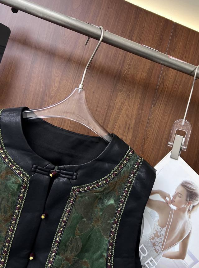 High-quality textured color-blocked jacquard new Chinese-style vest. Classic box-shaped vest + sleeveless tailoring. The lines are smooth and neat without dragging. It breaks the traditional sense of restraint. It is not picky about body shape and has room to spare. It gives the wearer an elegant and relaxed posture when layered with any base shirt. The combination of modern leather and classic jacquard creates a different spark. It is unique and eye-catching. Smlxl