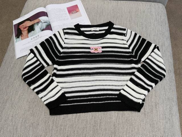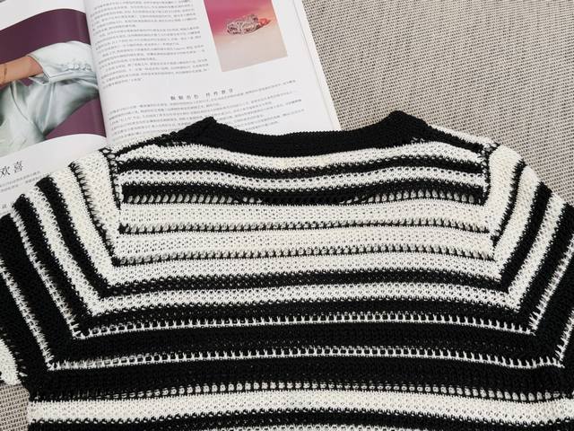 Round neck pullover cut, classic black and white stripes, fresh and playful, breaking the dullness~