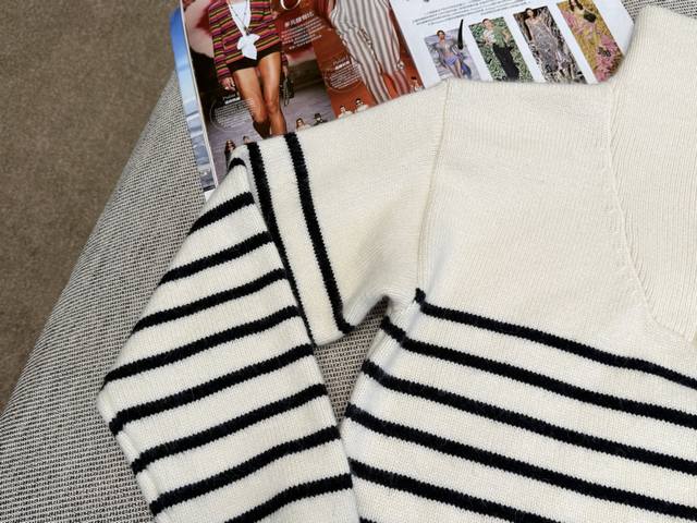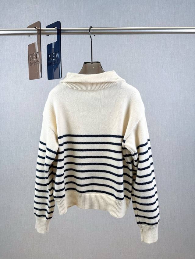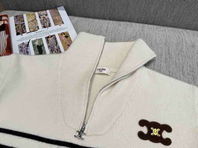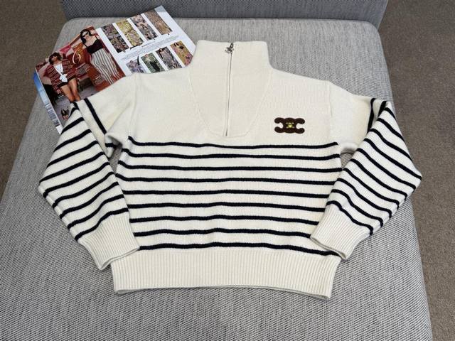 French striped stand-up collar pullover with a face-flattering lapel, zipper closure, and a Homesick Arc de Triomphe badge on the chest. Highlight the brand's design and pair it with jeans or skirts for a high-street look.