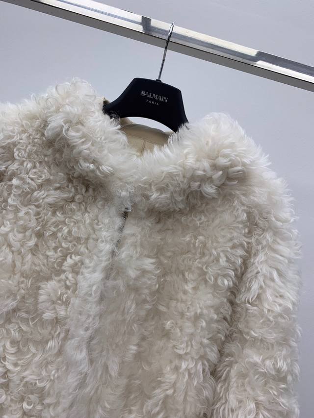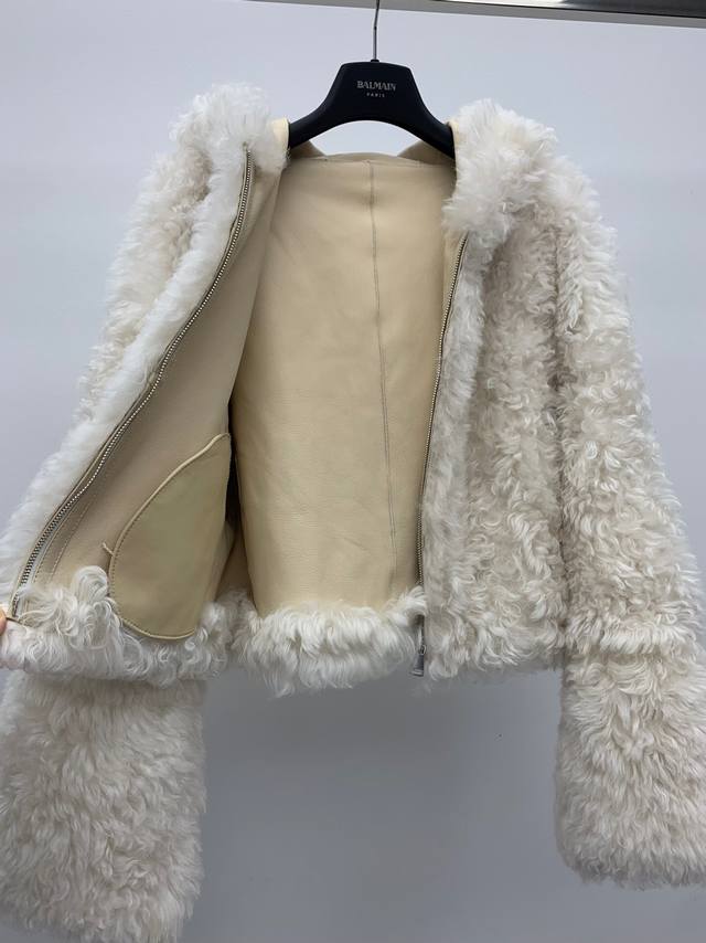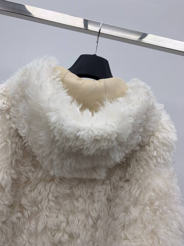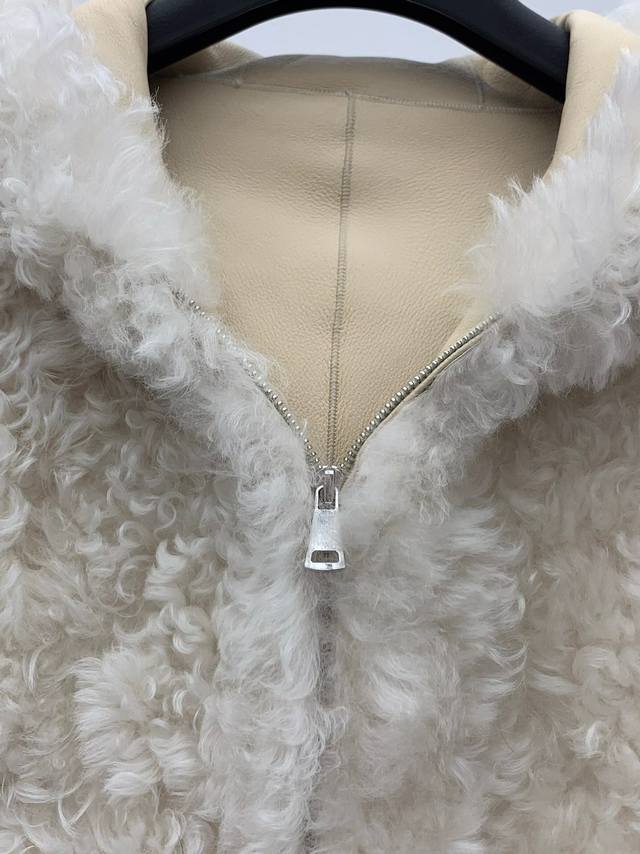 Hooded Shearling Coat Made with premium imported Tuscan shearling fabric. The fur has a natural curly style, with a beautifully curled look. The leather is soft, resilient, and highly elastic, providing excellent warmth and temperature control. A sleek, short cut with a hood and zipper design. Casual and stylish. Sizes S, M, L.