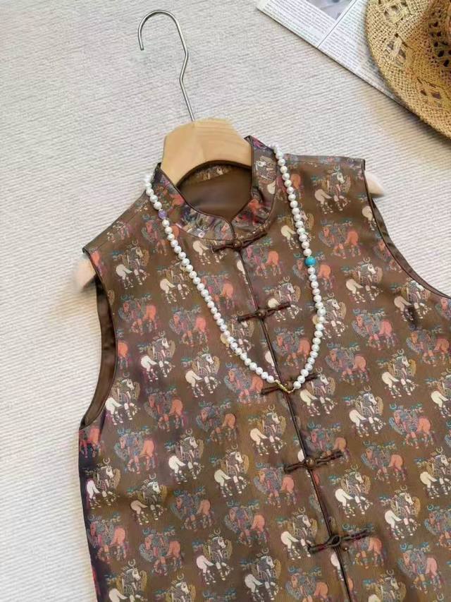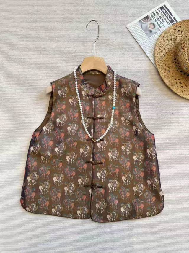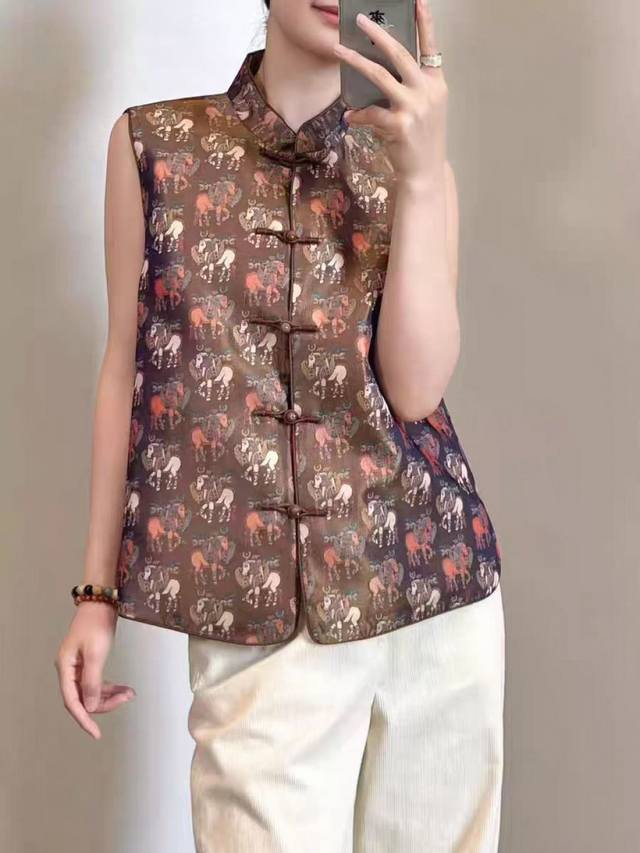 Horse woven patchwork autumn new Chinese style stand collar brocade vest sleeveless top waistcoat vest four sizes SML Xl